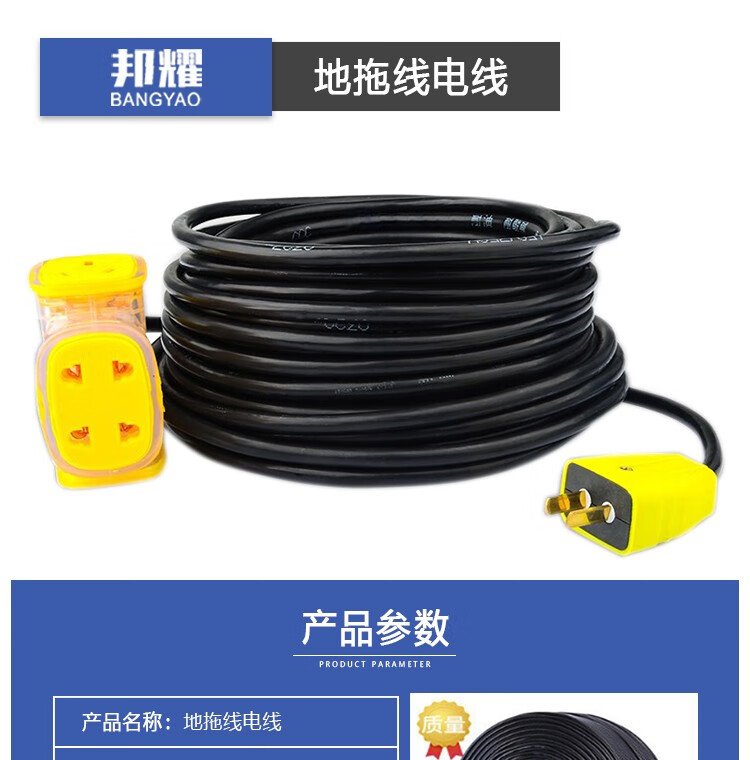 邦耀电力 地拖线电线 (国标)两芯4平方带7000瓦 40米 单位:卷