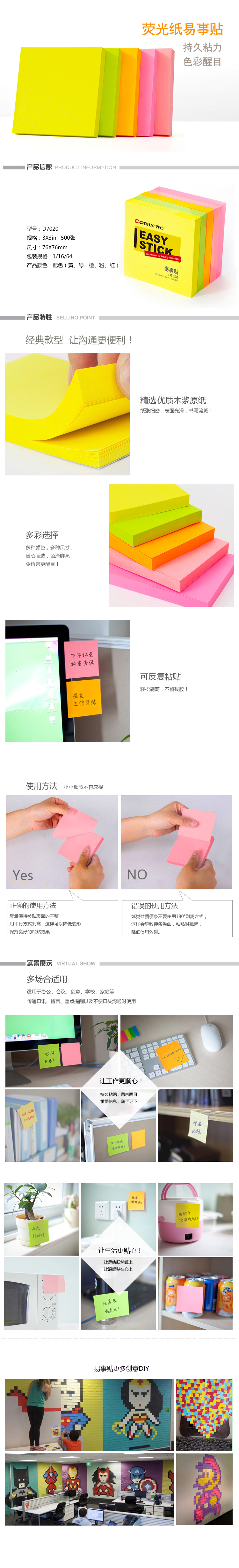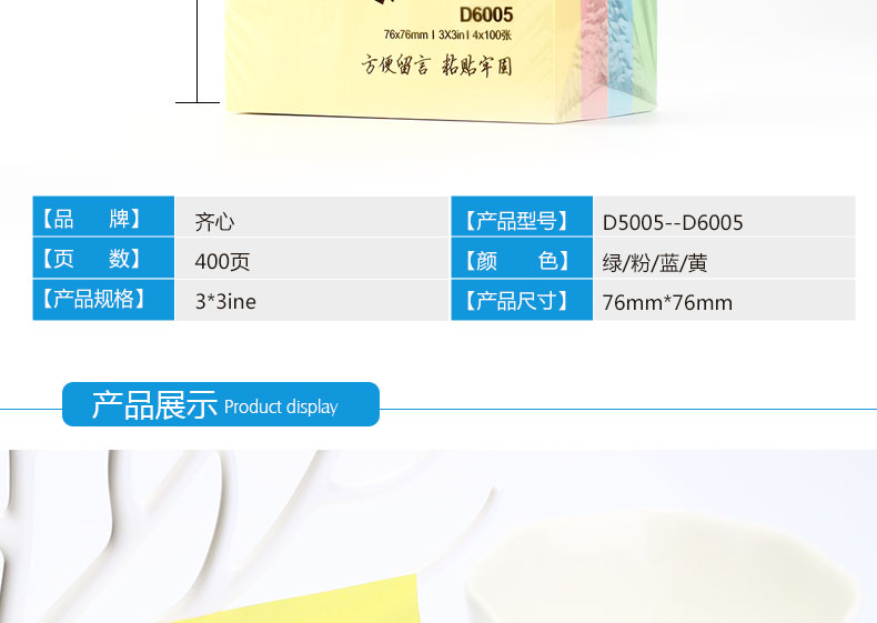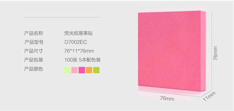 商品名称:齐心 D5002 易事贴3D6005便利贴D7020/D7002EC荧光纸标签贴混色