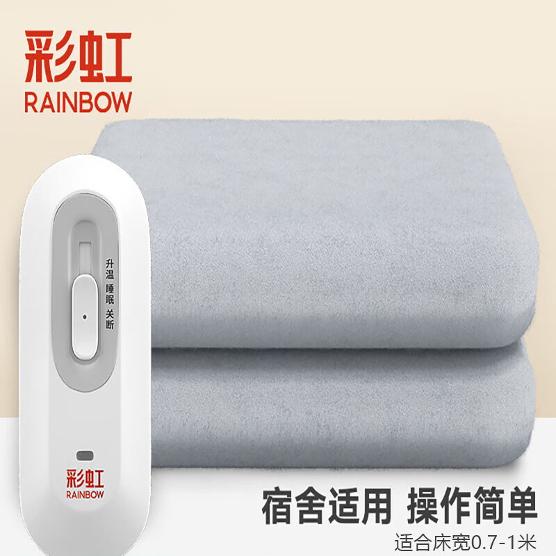 商品名称:彩虹电热毯小功率电褥子安全家用调温型学生宿舍加热取暖电毯子电热垫 150*70cm单人款J0715H-49 单位:张