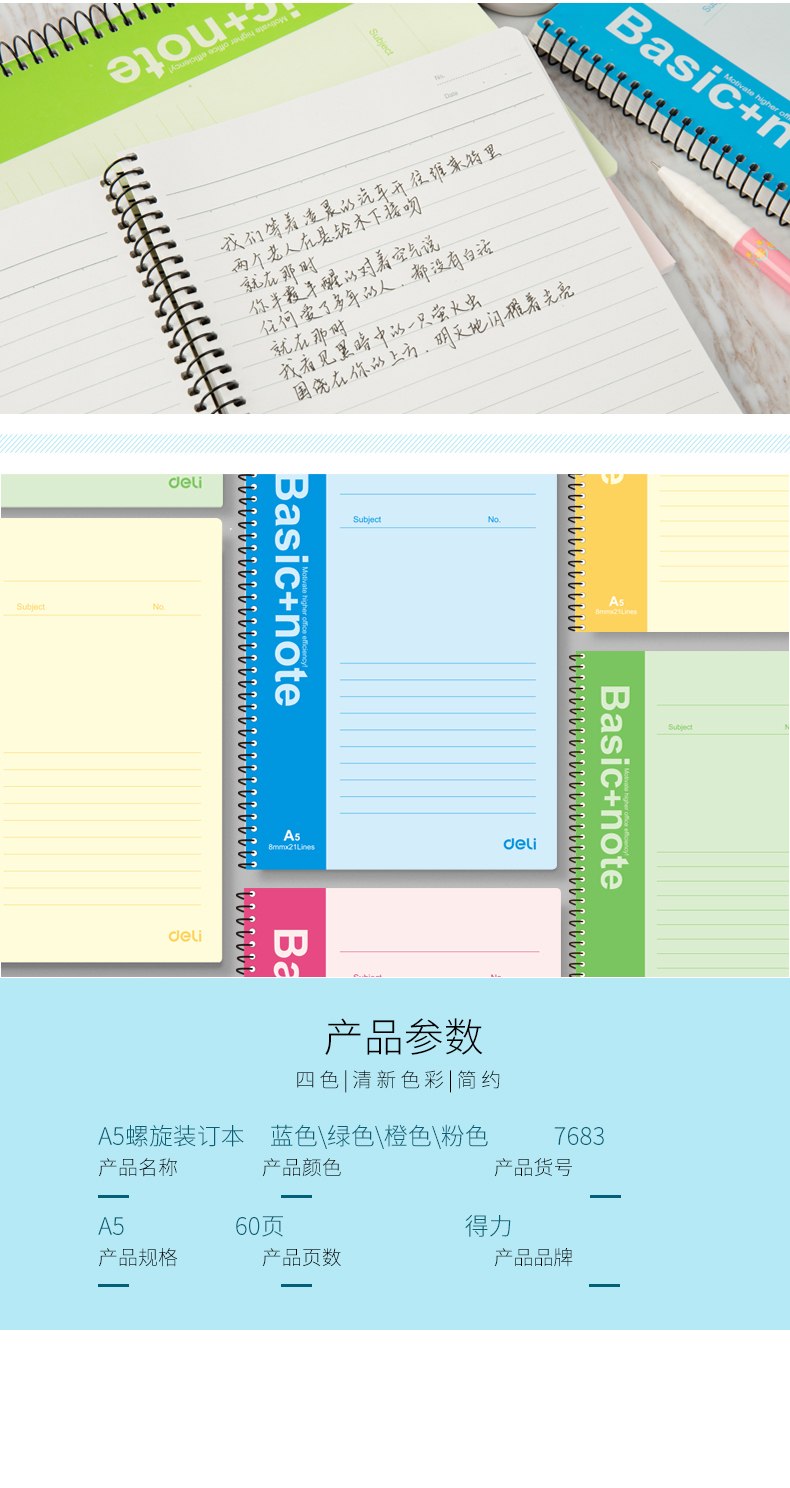 商品名称:得力 文具7683笔记本 线圈软抄本 彩色记事本 糖果色日记本 a5规格