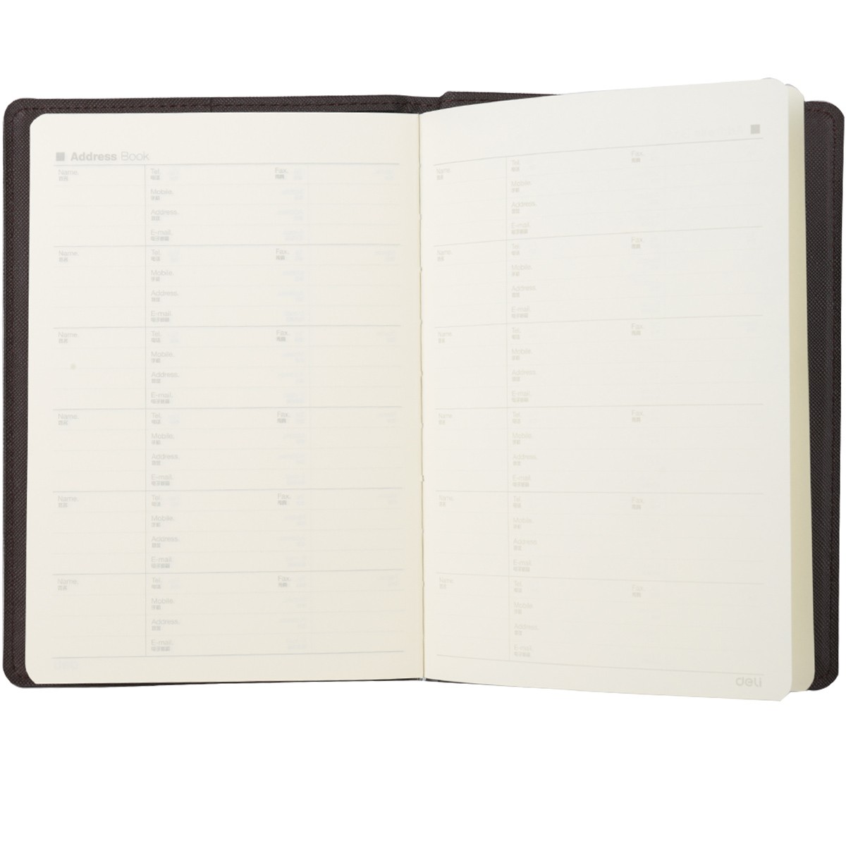 商品名称:得力 笔记本3327 皮面笔记本 25K皮面本146页办公会议记事本 文具