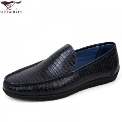 七匹狼 男鞋压花格纹头层牛皮男士套脚时尚商务休闲 舒适耐磨