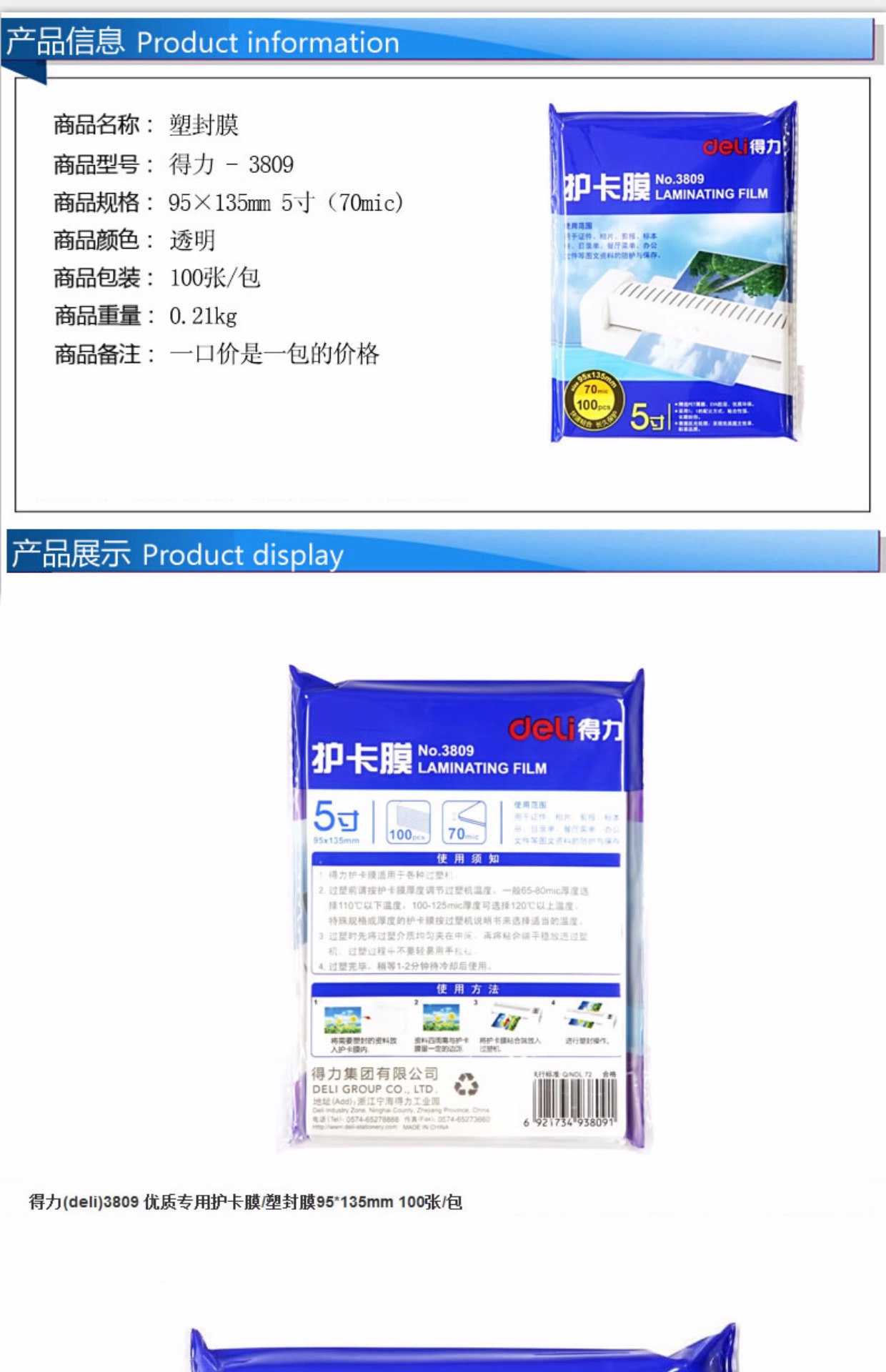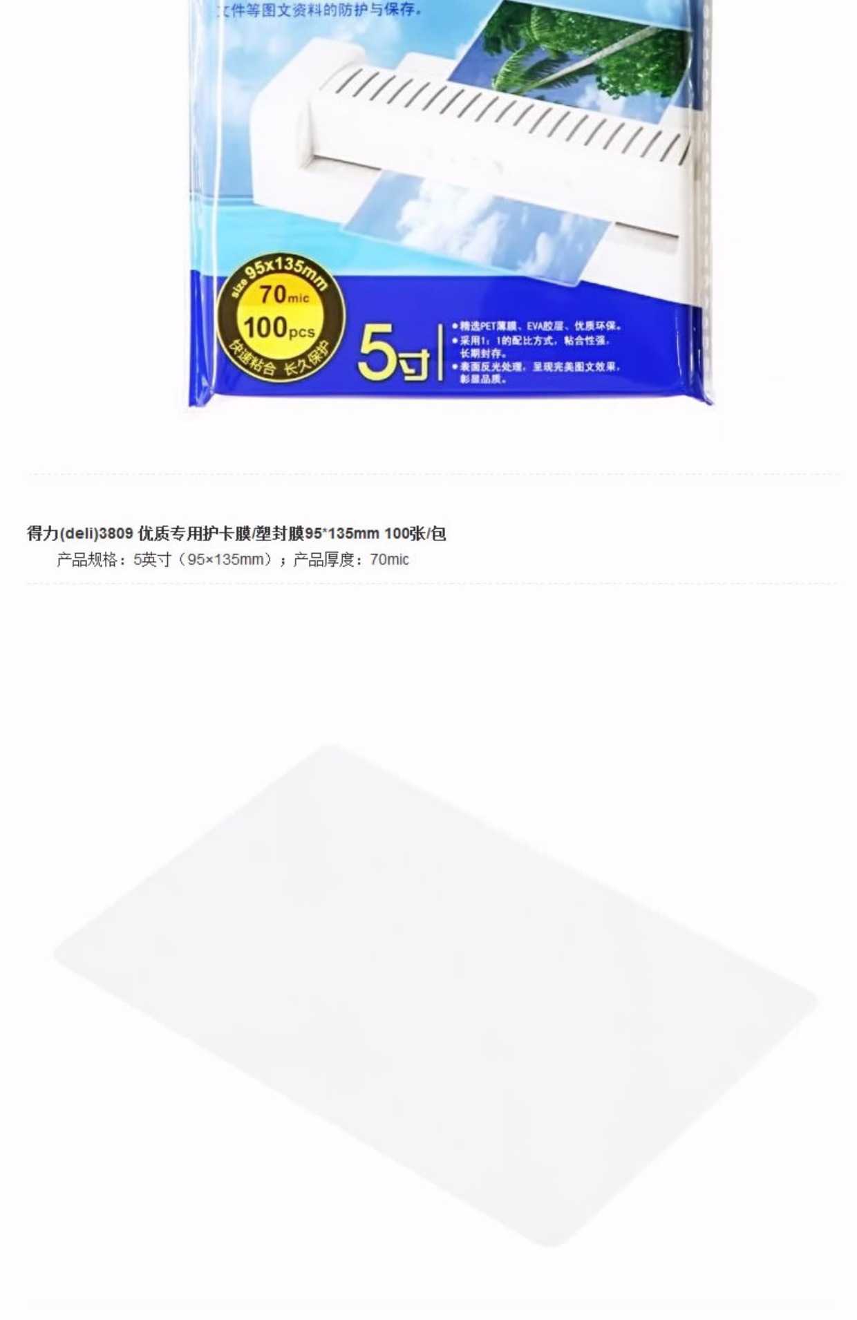商品名称:得力 5寸塑封膜过塑膜3809 7C护卡膜 防水优质耐用100张