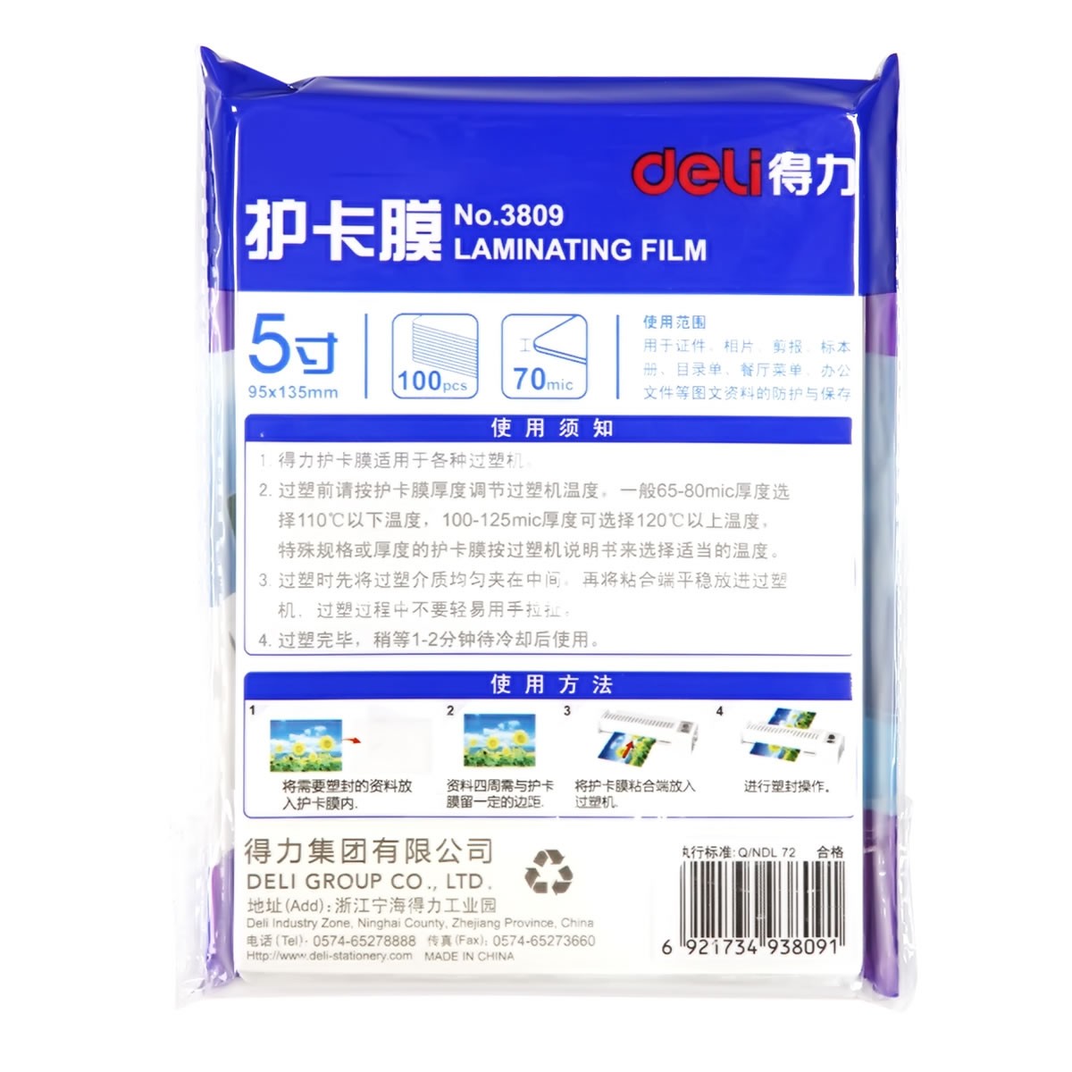 得力 5寸塑封膜过塑膜3809 7C护卡膜 防水优质耐用100张