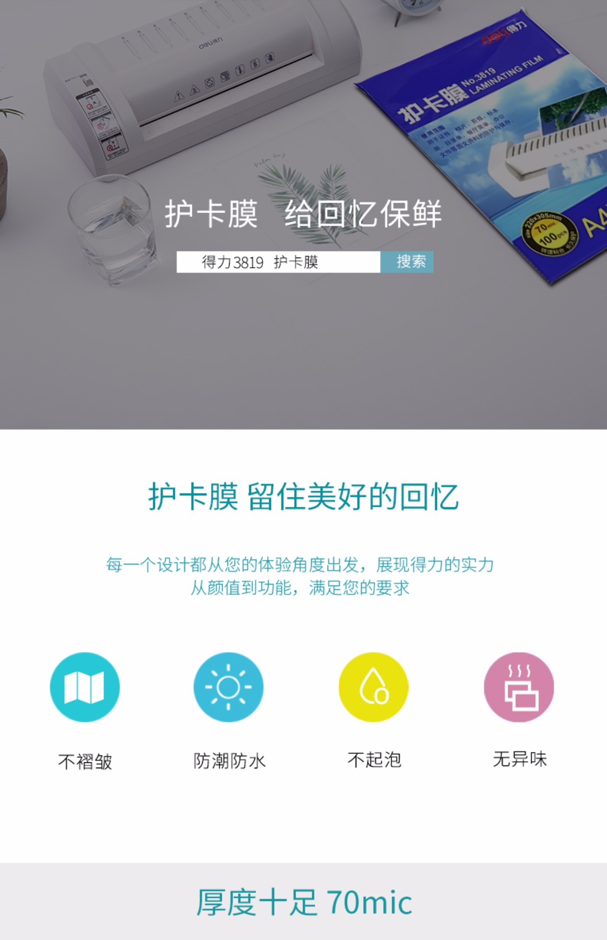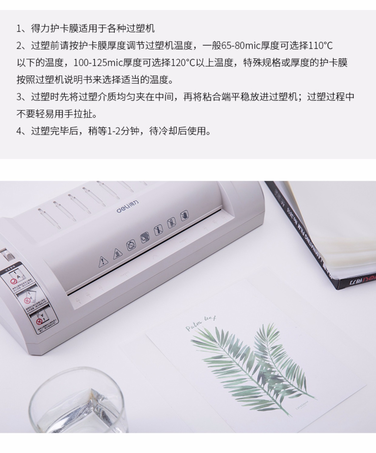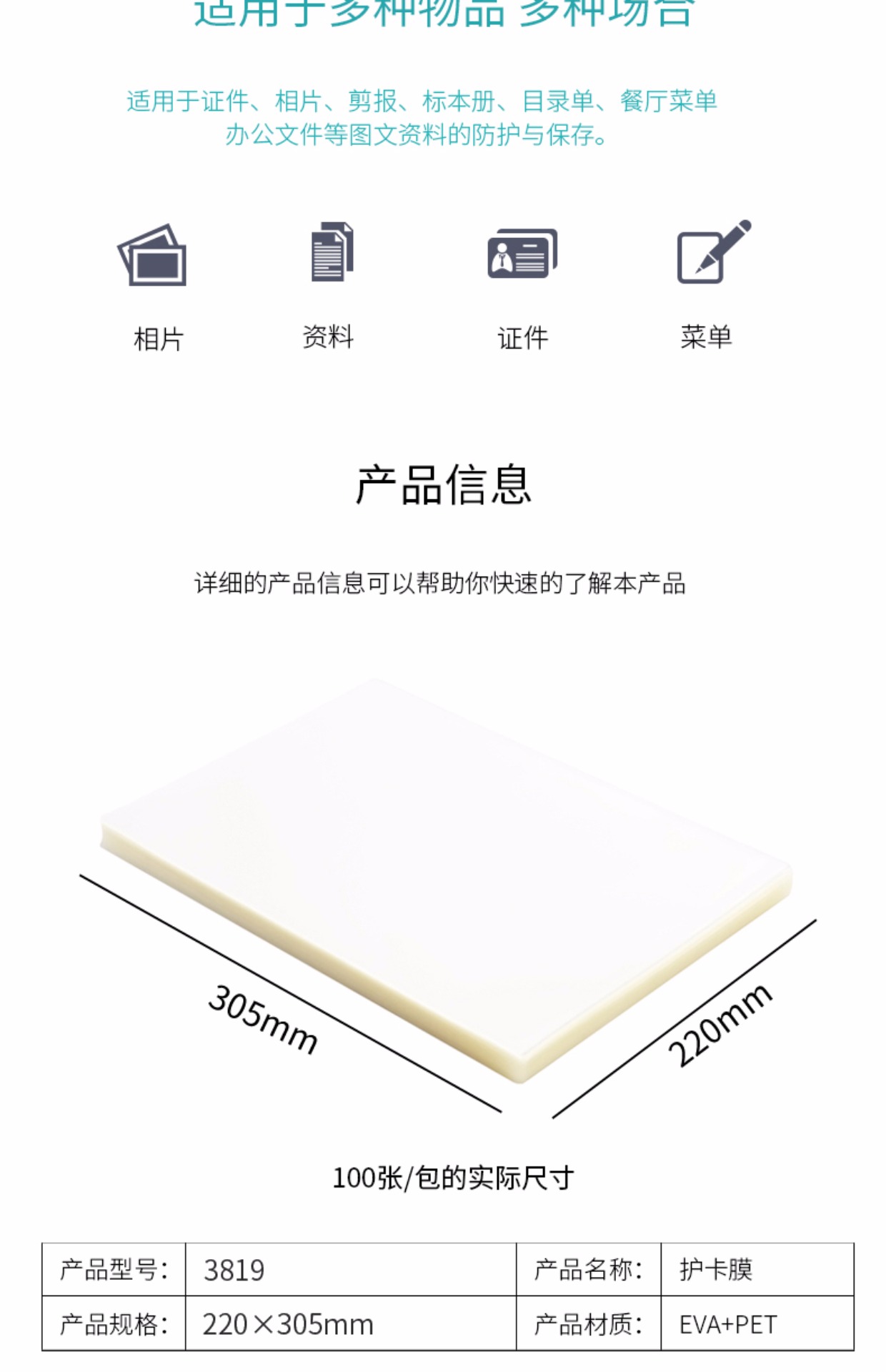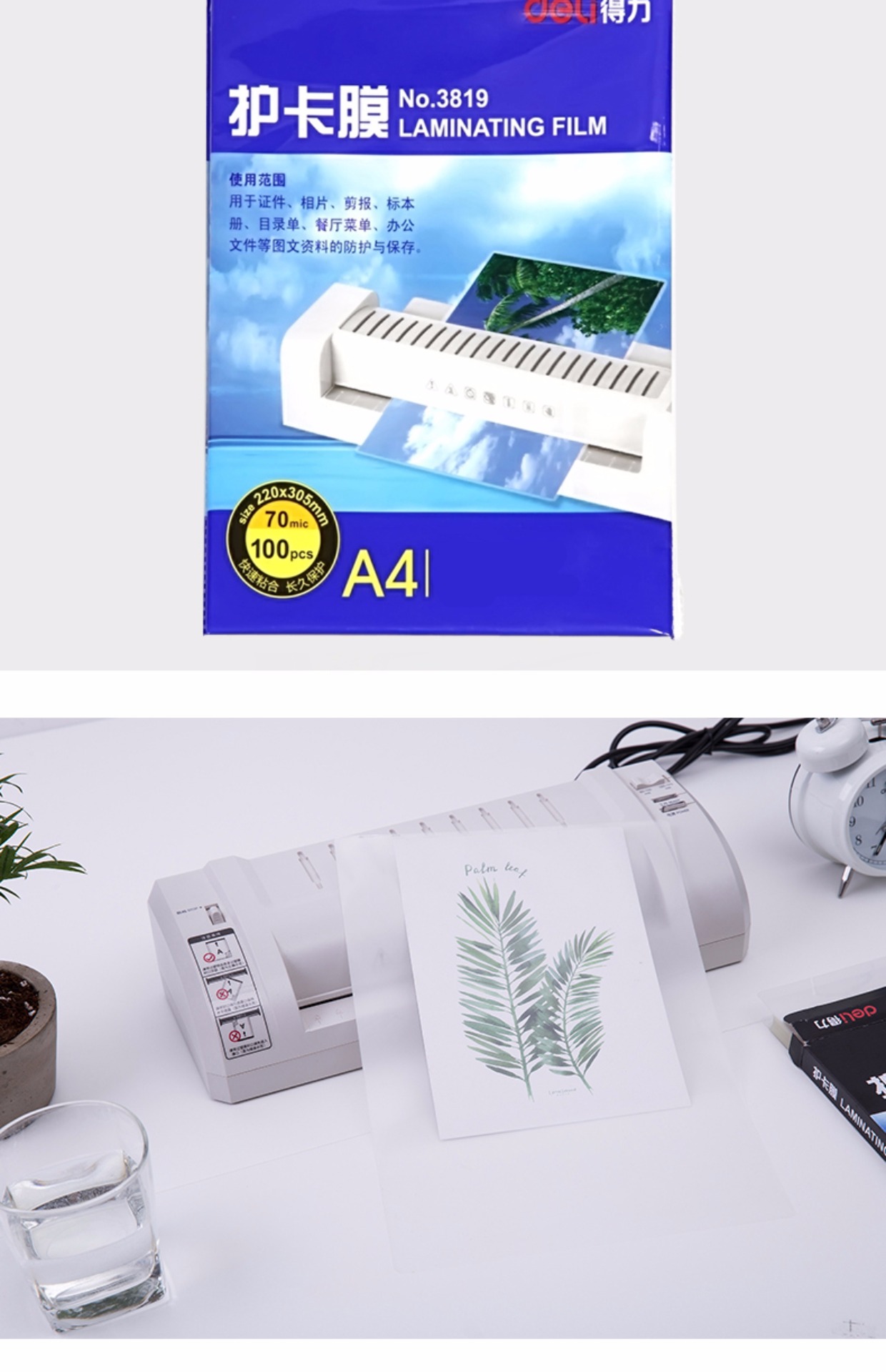 商品名称:得力 塑封膜护卡膜A4经济型高品质透明膜100只/包 3819