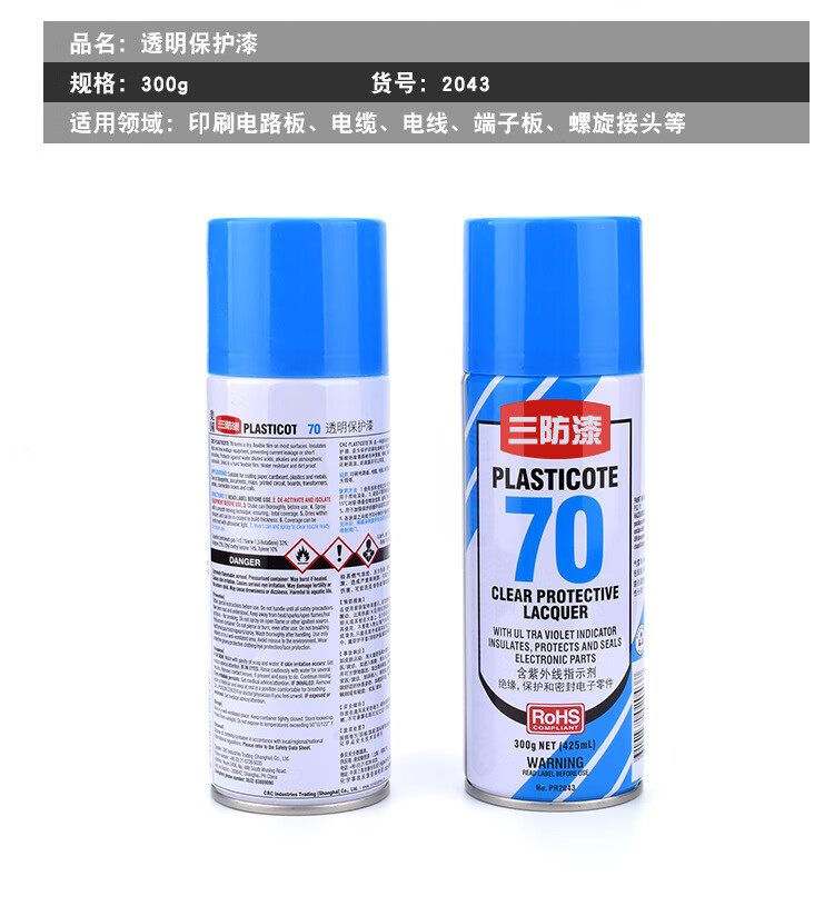 商品名称:惠利得 pcb线路电路板三防漆70绝缘漆自喷透明保护漆防潮漆三防胶 三防漆300g (3瓶) 单位:组