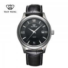 天王 表机械表男表皮带手表皮带休闲男士防水腕表黑色GS5750