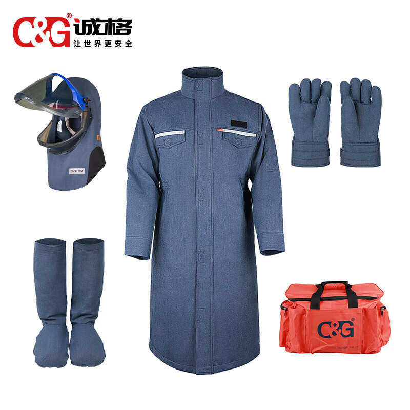 商品名称:诚格 (C&G) 27cal防电弧服大袍套装 Ⅲ级本质阻燃 高透前开式头罩 单位:套
