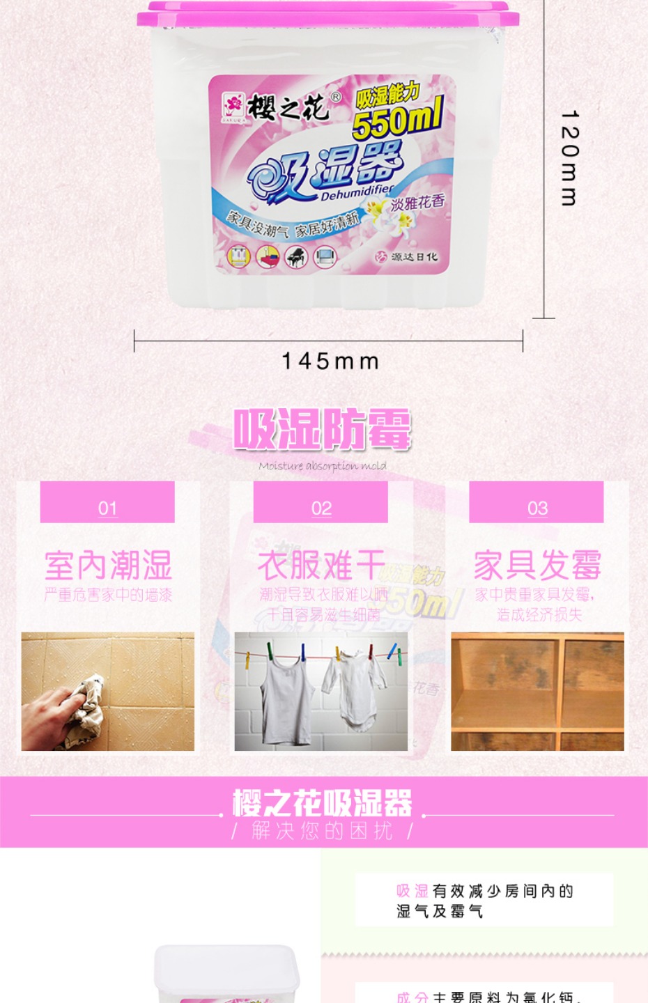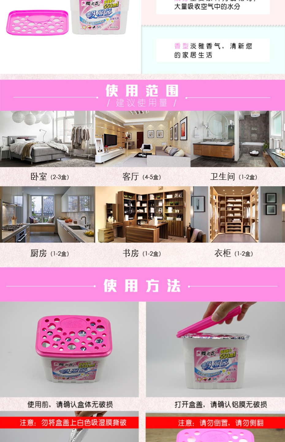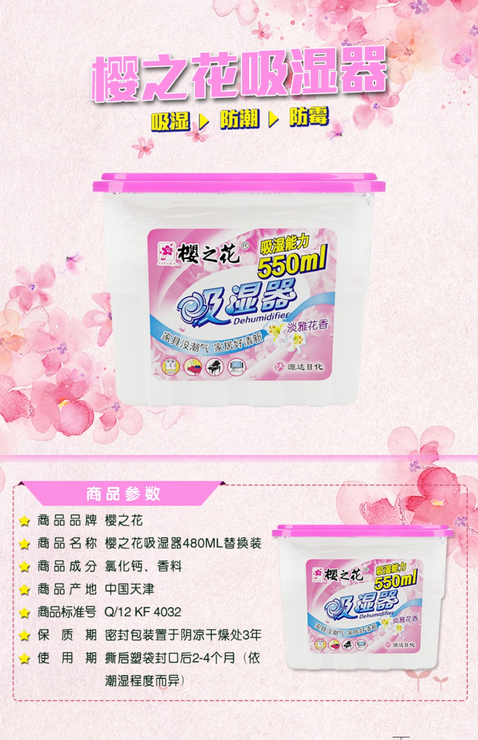 商品名称:樱之花 强力吸湿器除湿盒干燥剂260克6件花香型防霉毒