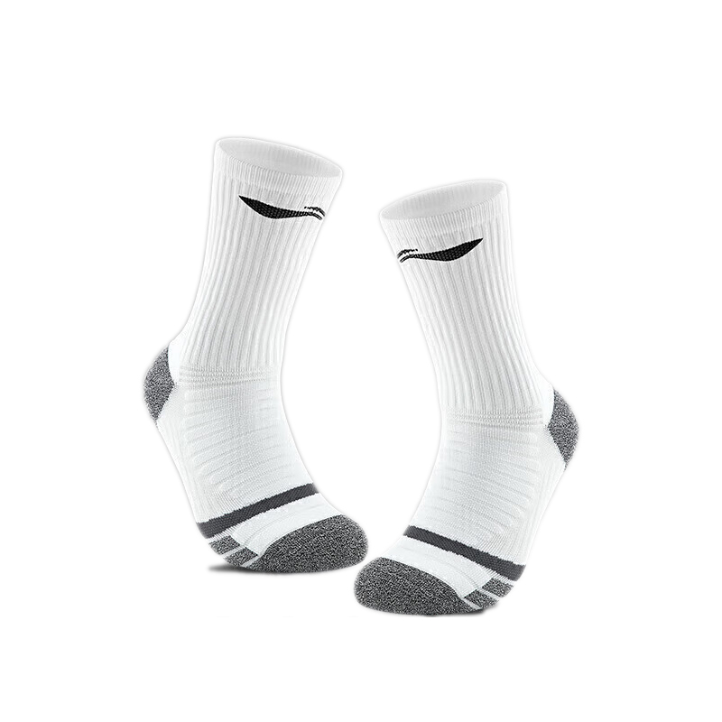 李宁(LI-NING)袜子男篮球袜运动袜跑步防滑毛巾底长袜加厚耐磨保暖足球篮球棉袜 白色【加厚毛巾底1双装】 单位:双