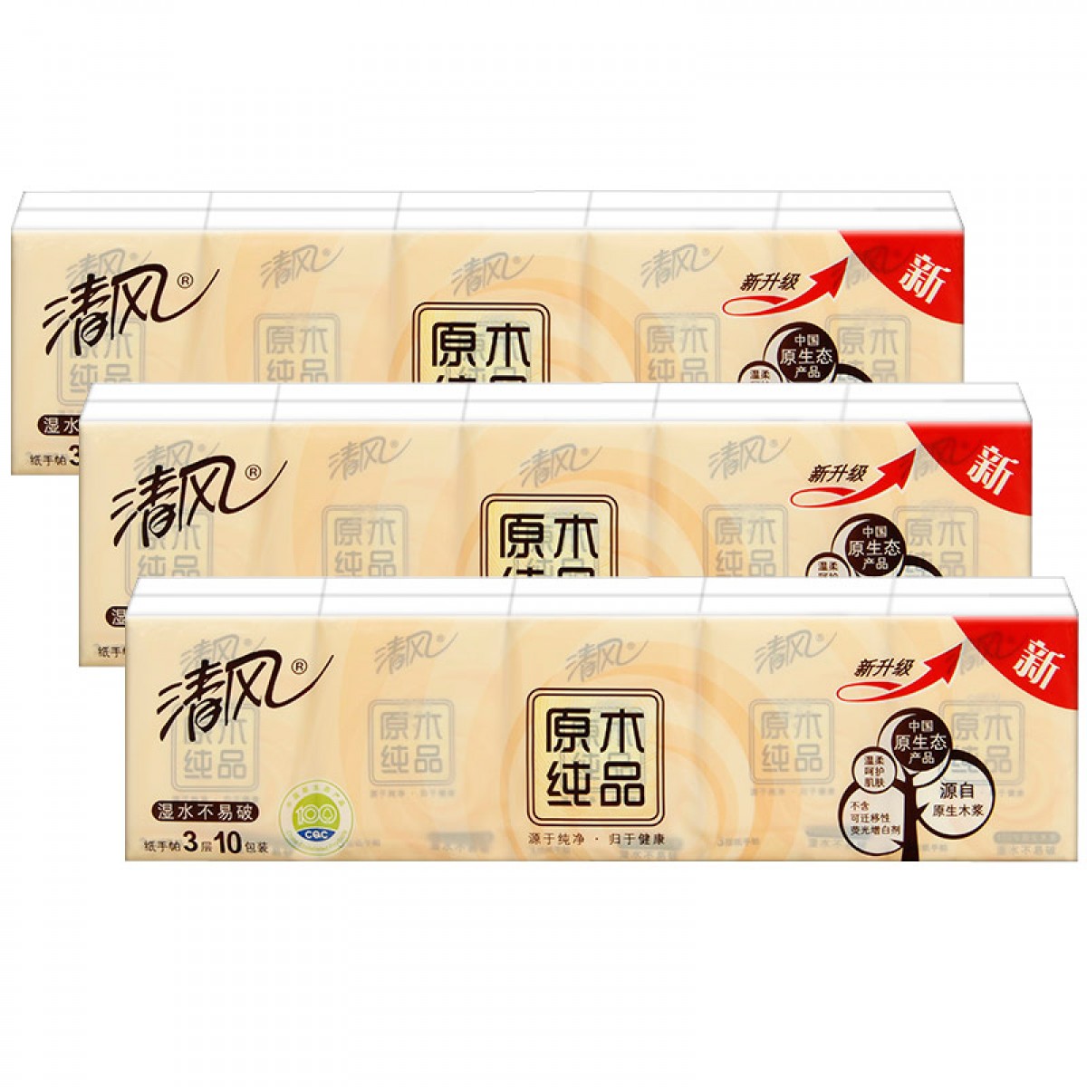商品名称:清风 B66AC1手帕纸原木纯品3层10张餐巾纸9条便携装手纸面纸巾90包