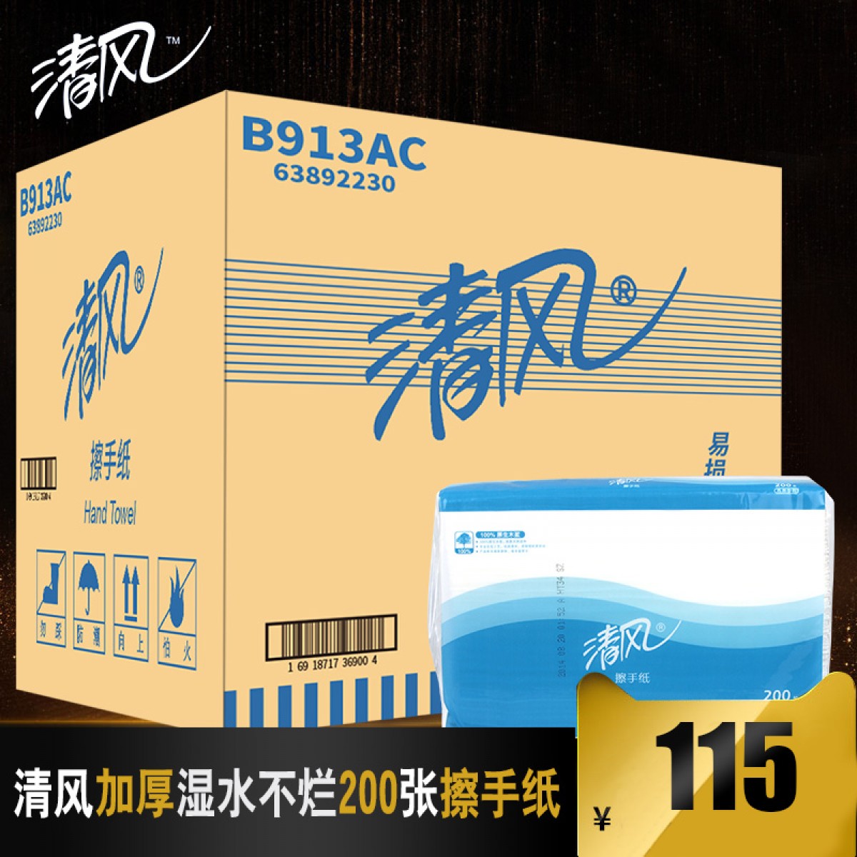 商品名称:清风 B913洗手间抽取式干湿擦手纸 原木抽整箱纸吸水 20包加厚
