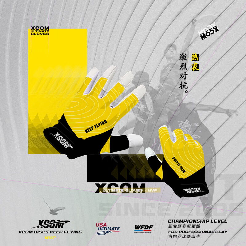 艾克飞盘 手套 男女户外跑步训练健身防起茧防滑全指 得分王-黑黄-L码 单位 :副