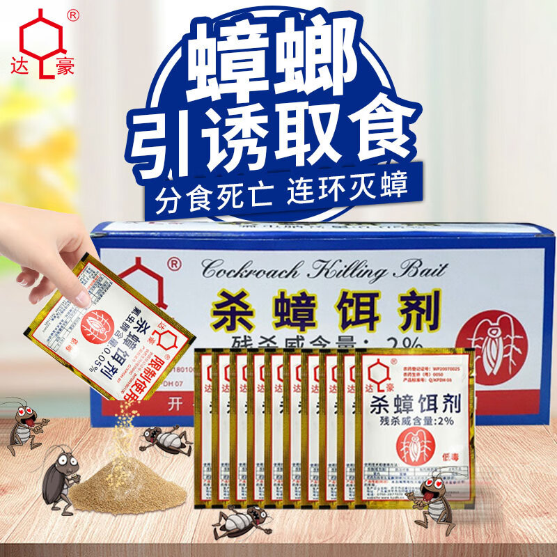 商品名称:达豪 蟑螂药粉全升级窝端家用神器杀蟑饵剂强力杀蟑螂室内灭蟑螂50包 单位:盒