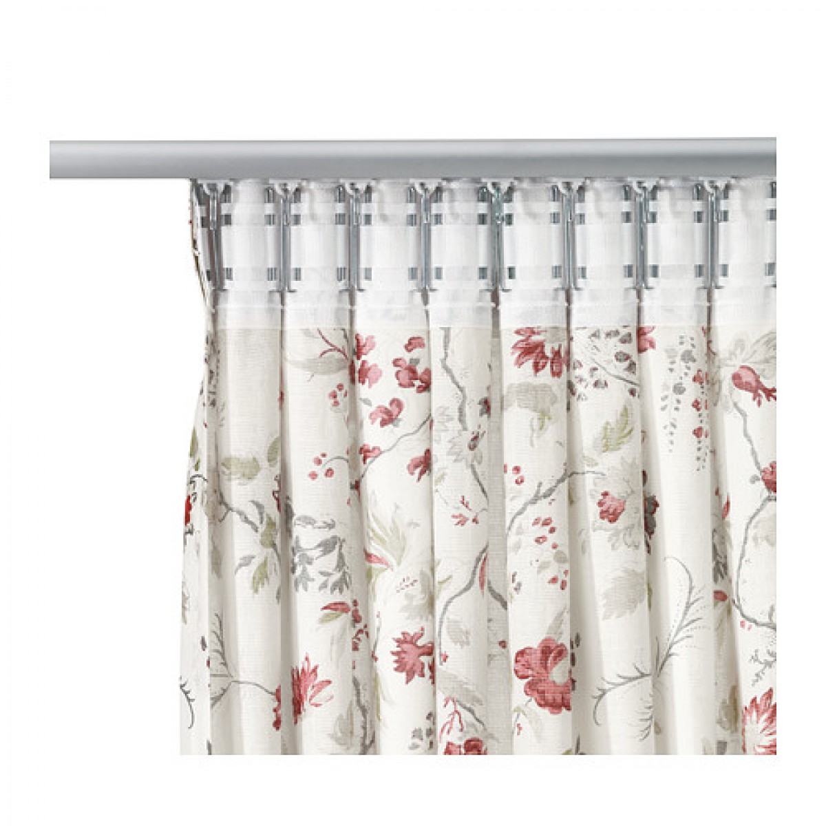 - 您可使用隐形绊带或环扣、挂钩将窗帘挂到窗帘杆上。