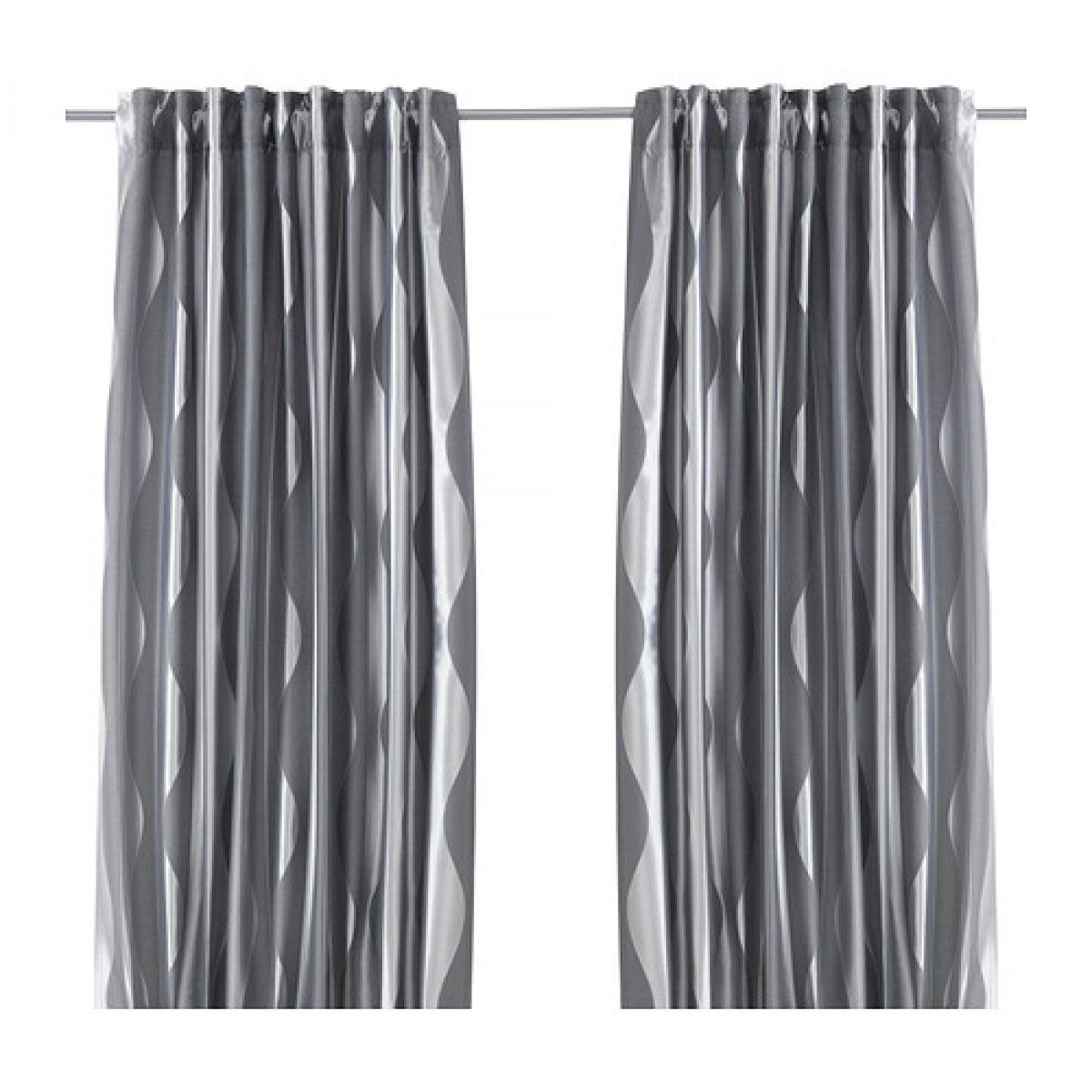 每幅窗帘两块窗帘布的图案布局都完全相同。另一幅窗帘中两块窗帘布图案可能有所不同。