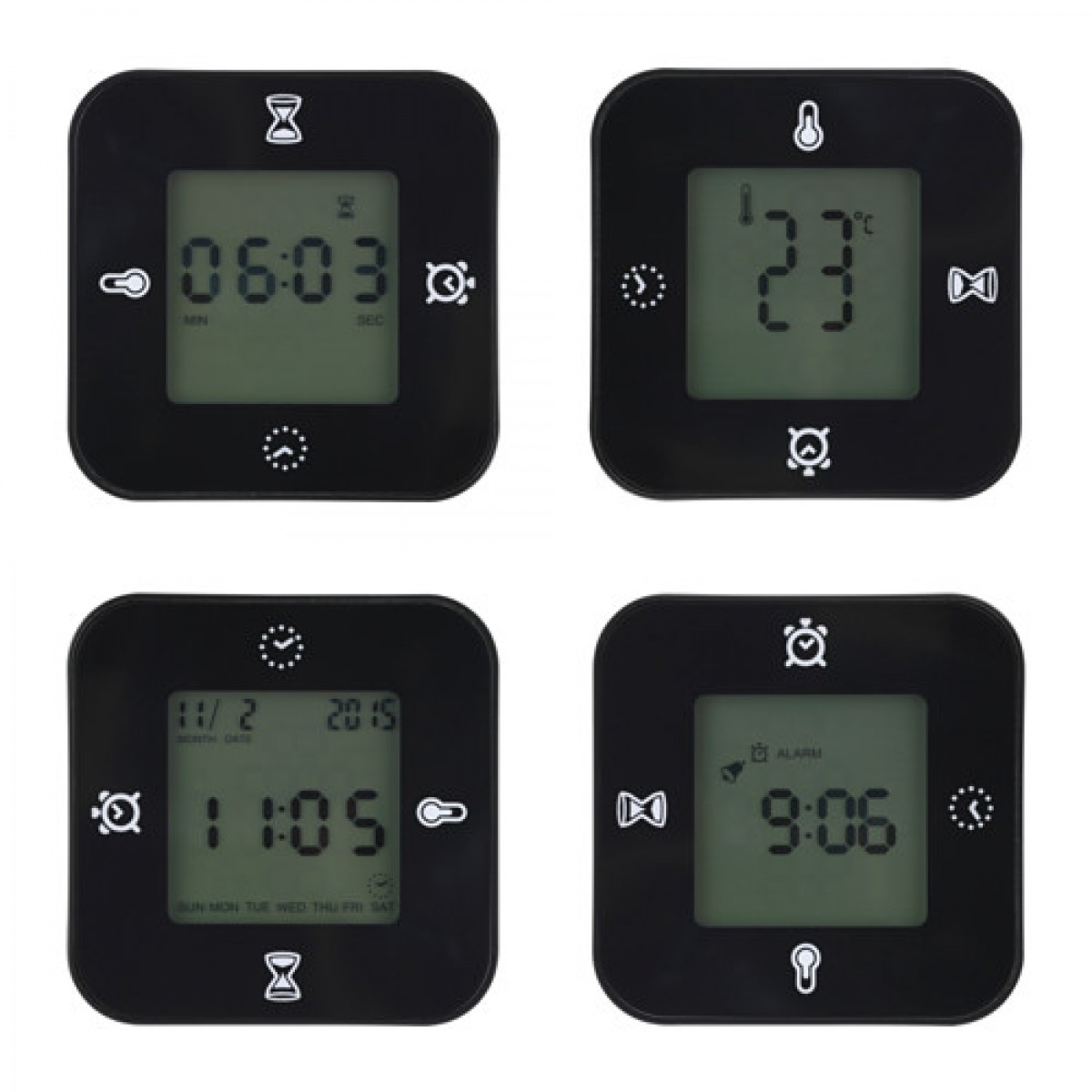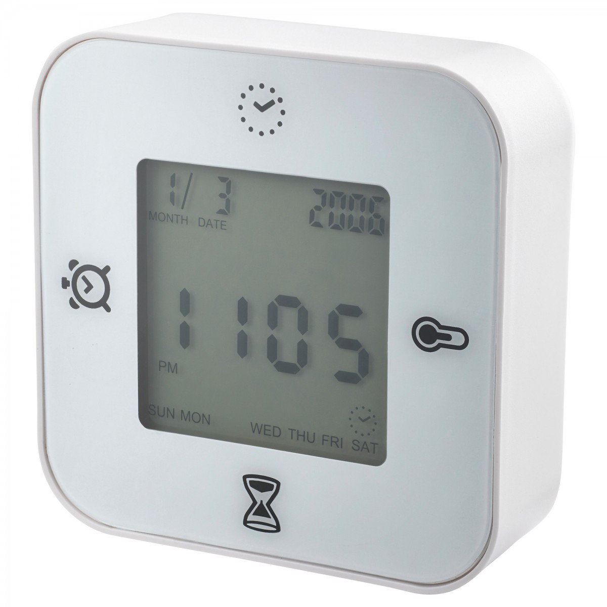 产品信息(以商场为准) 安装后尺寸宽度: 7 厘米深度: 3 厘米高度: 7 厘米重要特征- 可进行四种设置:时间和日期、温度、定时或倒数计时。需另购电池另售;须使用2节LR03 AAA 1.5V 电池。产品描述框架: ABS塑料前挡板: 聚碳酸酯塑料包装尺寸和重量包装: 1产品货号 : 50171419宽 : 8 厘米高 : 4 厘米长 : 8 厘米重量 : 0.1 千克数量 : 1