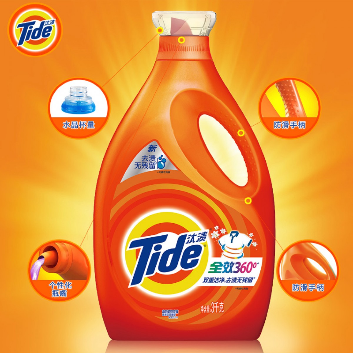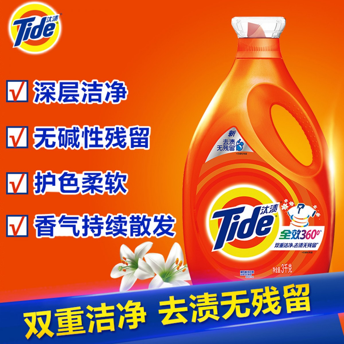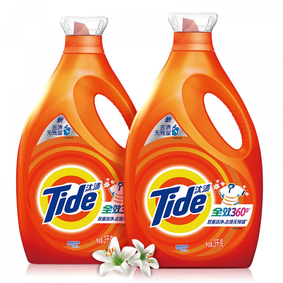 商品名称:汰渍洗衣液家庭装全效360去渍洁雅百合香型3千克*2瓶