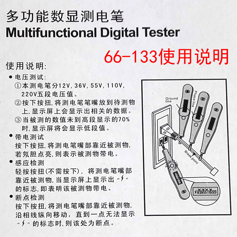 以下 多功能数显测电笔12-220V 件号:66-133-23 实拍图片
