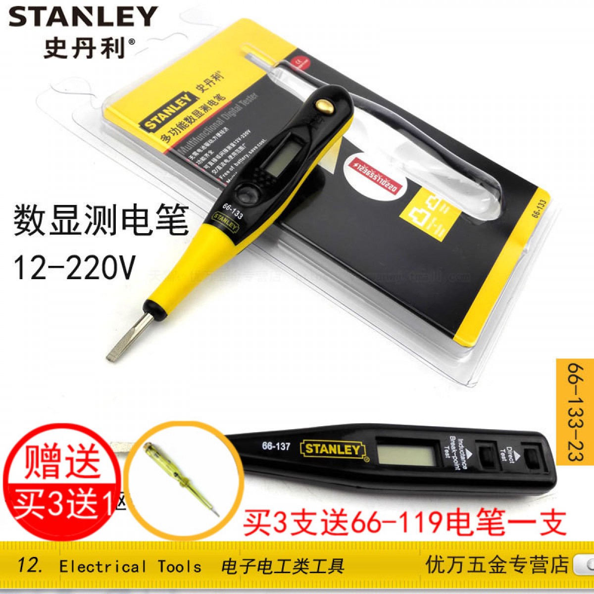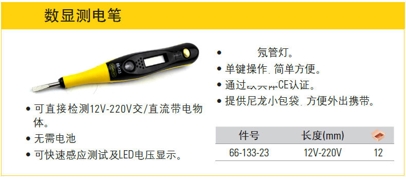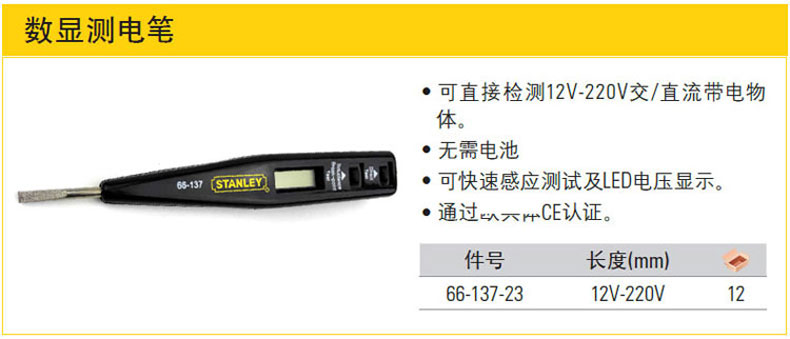 商品名称:STANLEY/史丹利 工具数显测电笔 电工验电笔 66-133-23/66-137