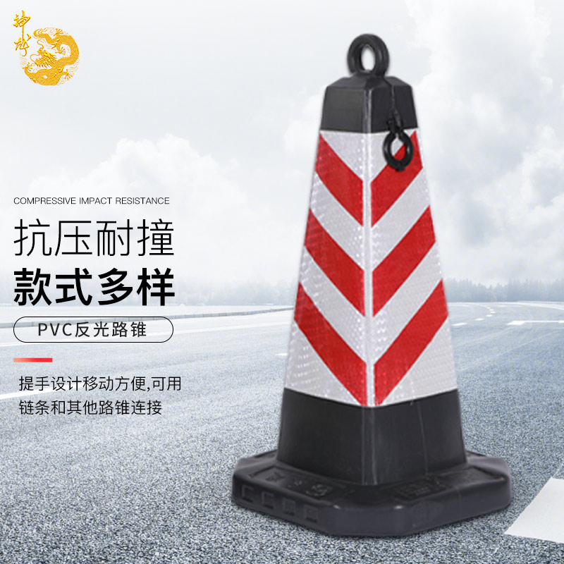 商品名称:神龙 反光路锥塑料方锥桶 雪糕筒路障柱锥形桶 交通设施 塑料红白斜纹双耳方锥 单位:个