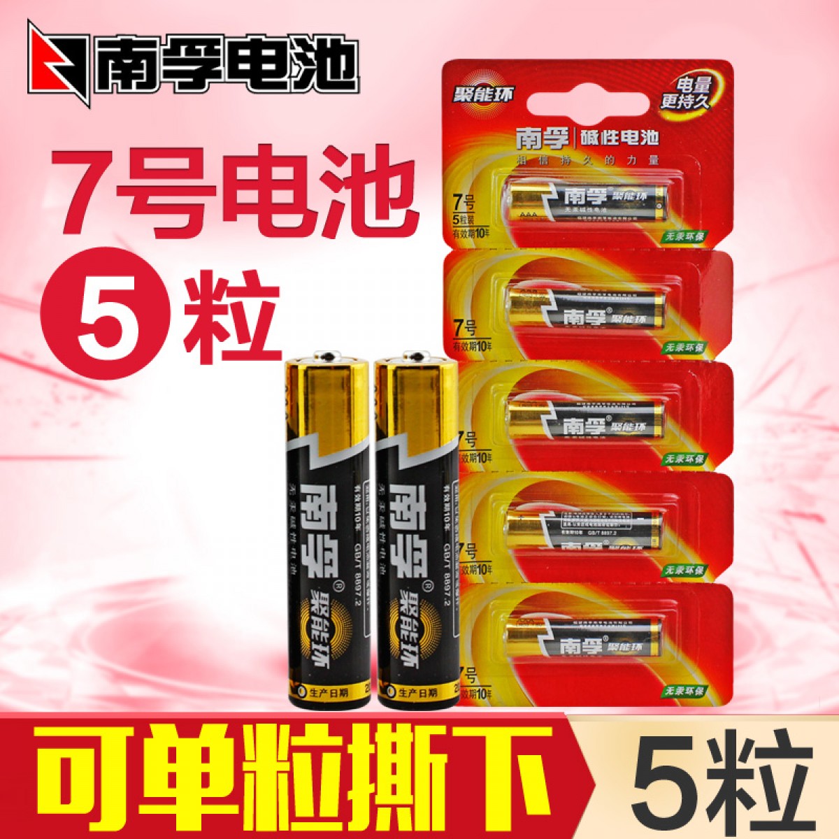 商品名称:南孚 7号电池7号lr03七号电池 1.5V碱性干电池 5粒