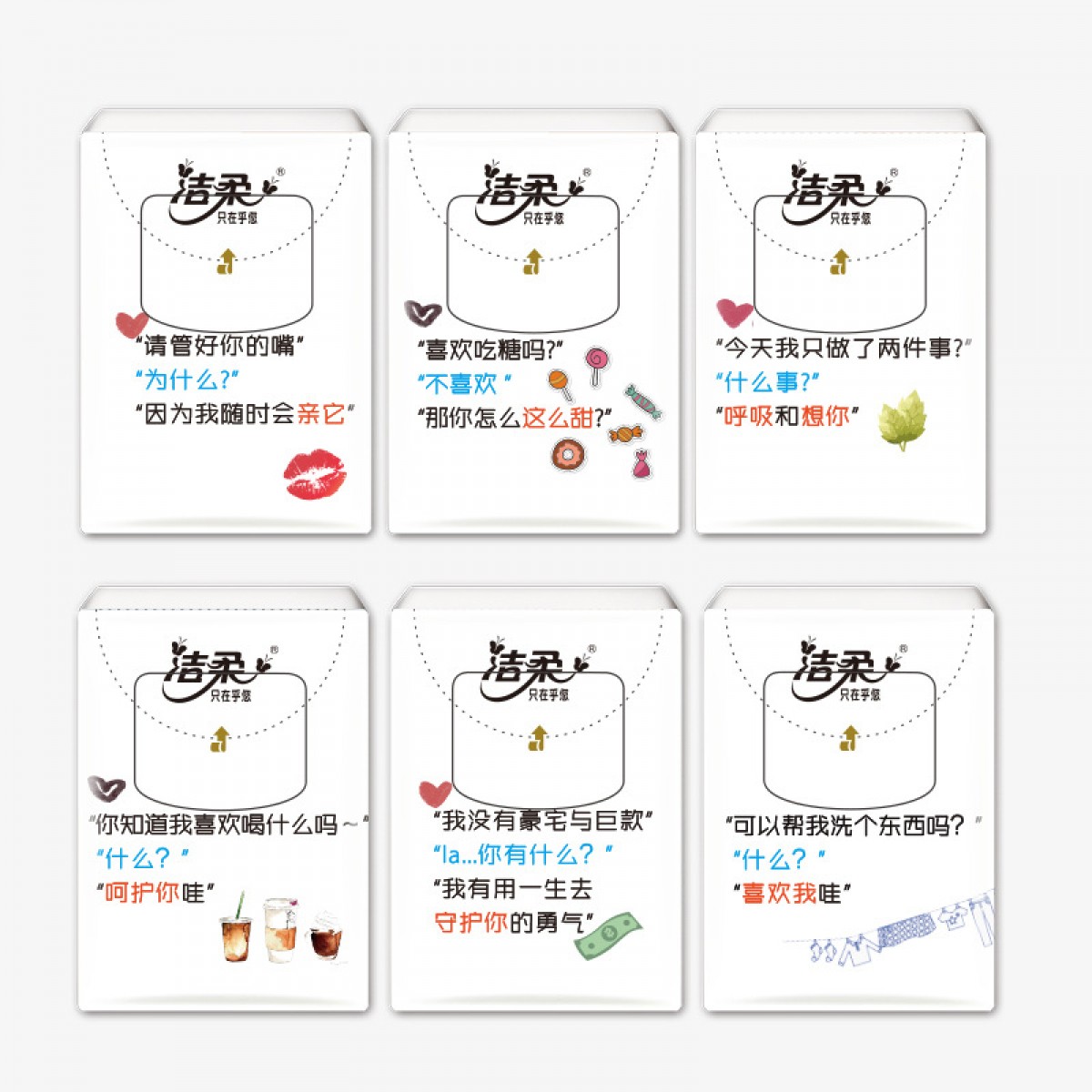 商品名称:洁柔 手帕纸巾520表白纸想撩你无香4层6片餐巾纸30包