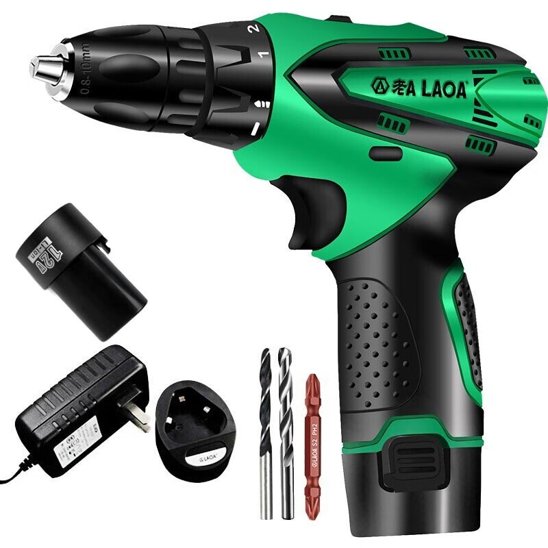 老A (LAOA)标准型12V锂电钻电池工具套装 批头 绿标电起子螺丝刀 LA712112 标准两电一充 单位:组