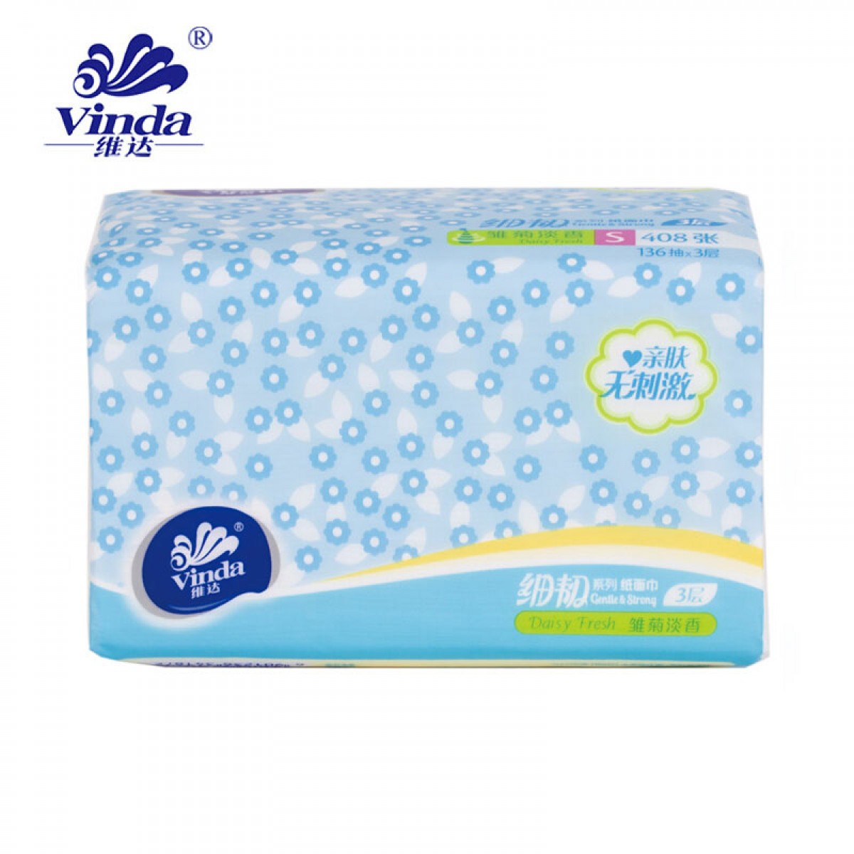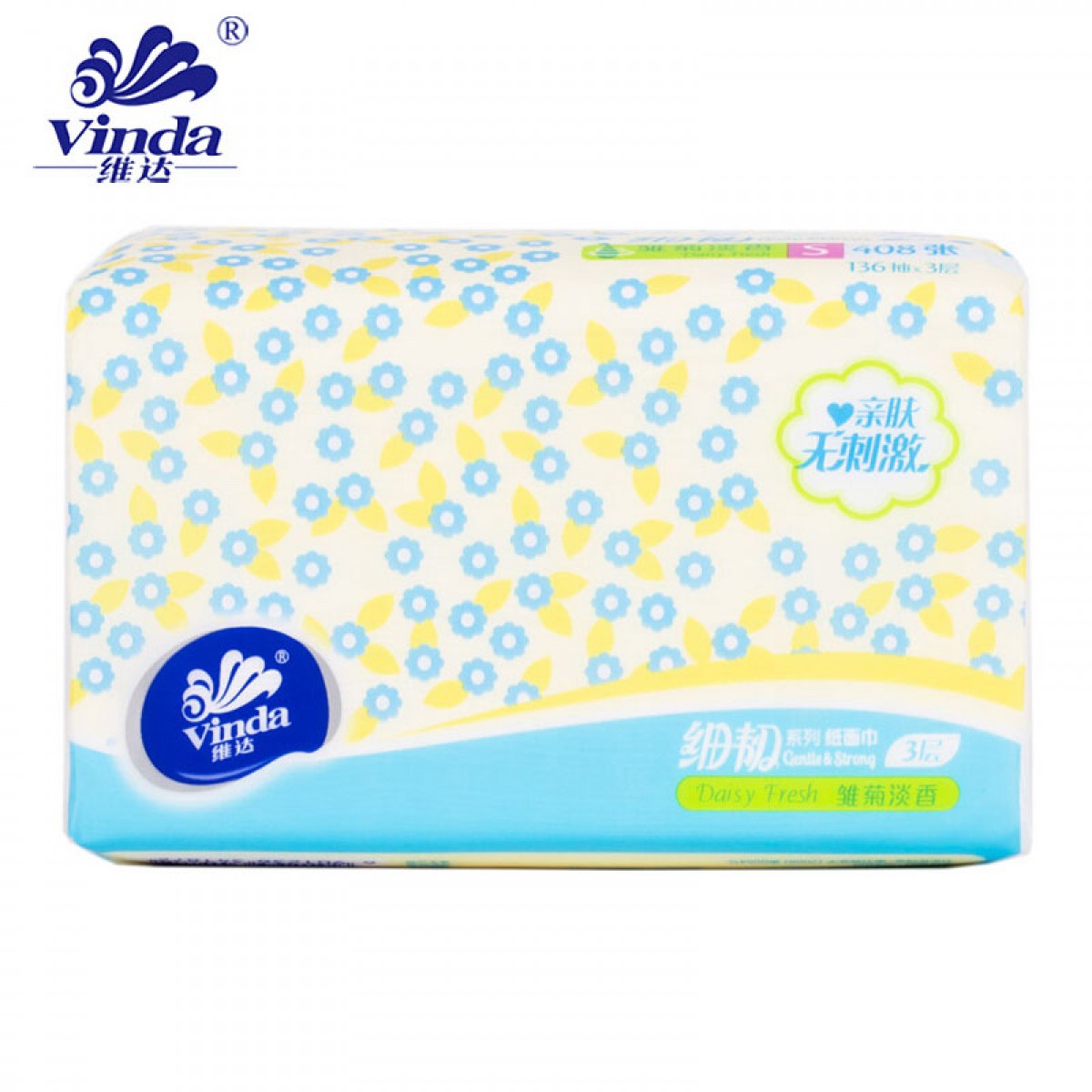 商品名称:维达 家庭装 雏菊淡香细韧3层压花136抽/包 6包/提 V2249A