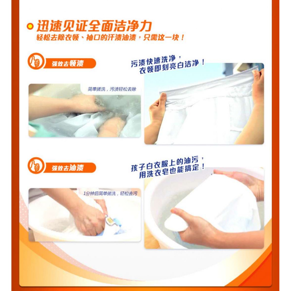 汰渍洗衣皂全效360度202克X4块透明皂有效去渍