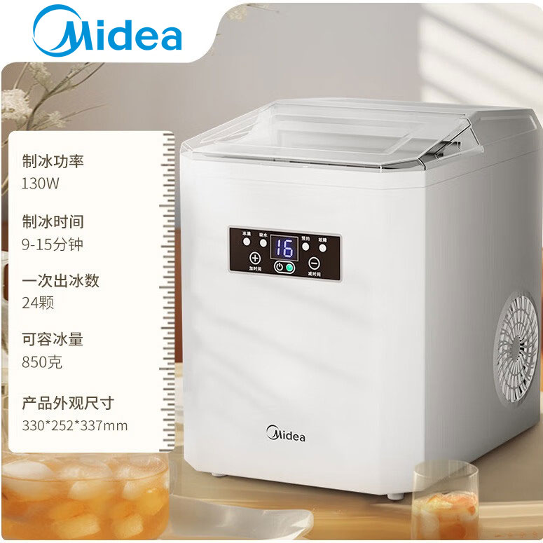 商品名称:美的(Midea) 制冰机 家用小型方块冰迷你冰块机16KG宿舍全自动清洁预约功能厨房小家电 MBJ-20F11E 单位:个