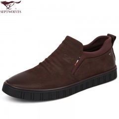 七匹狼 棉鞋冬季头层牛皮复古加绒保暖低帮真皮毛皮鞋