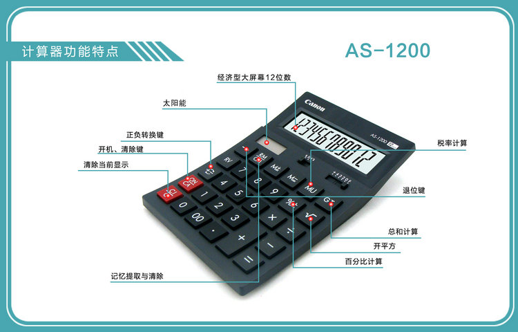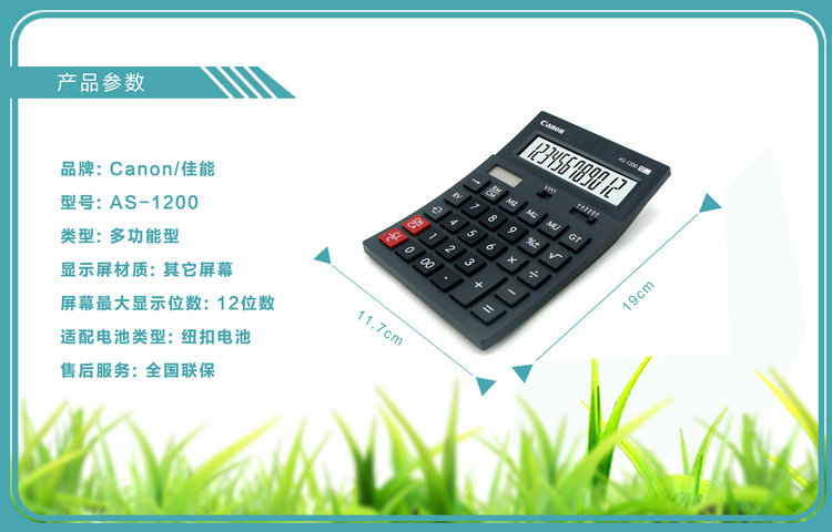 商品名称:佳能/Canon AS-1200计算器 经典弧形设计大号双重电源机型