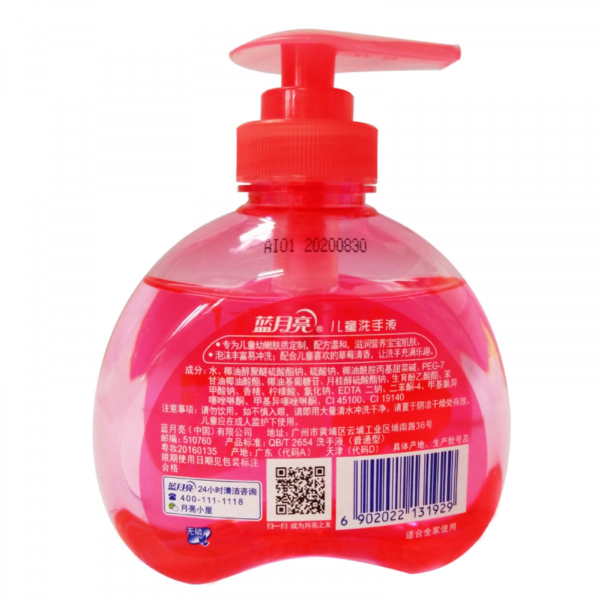 商品名称:蓝月亮 225g瓶装儿童洗手液(草莓)