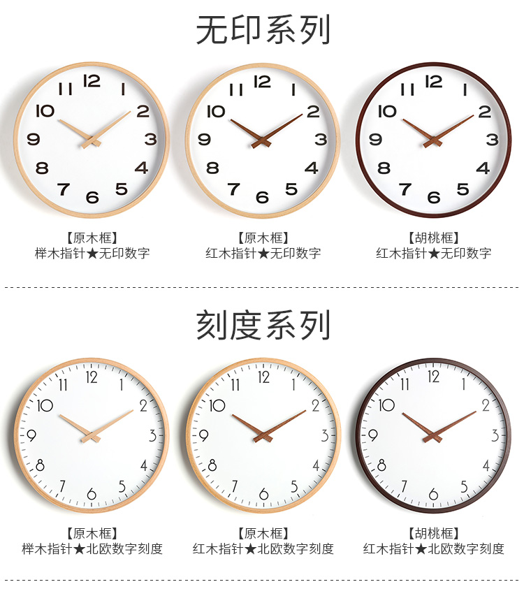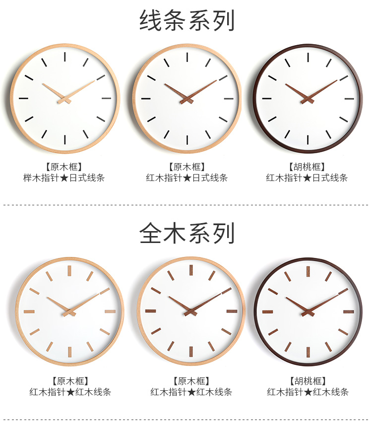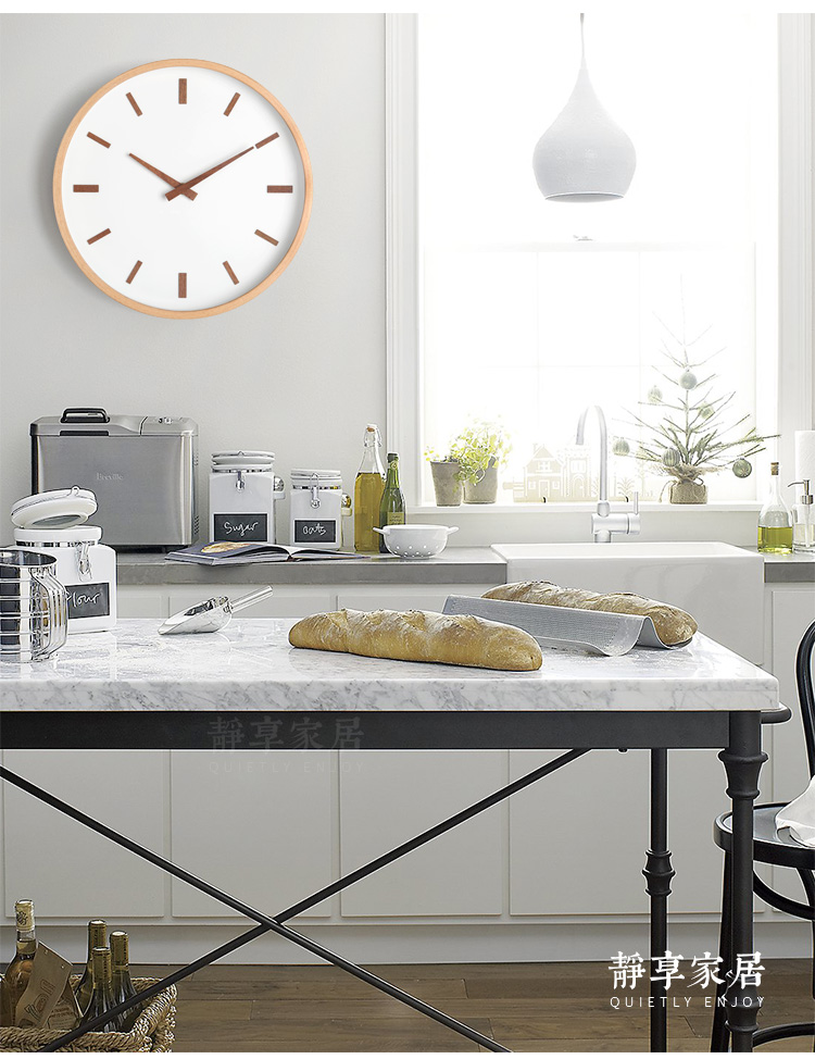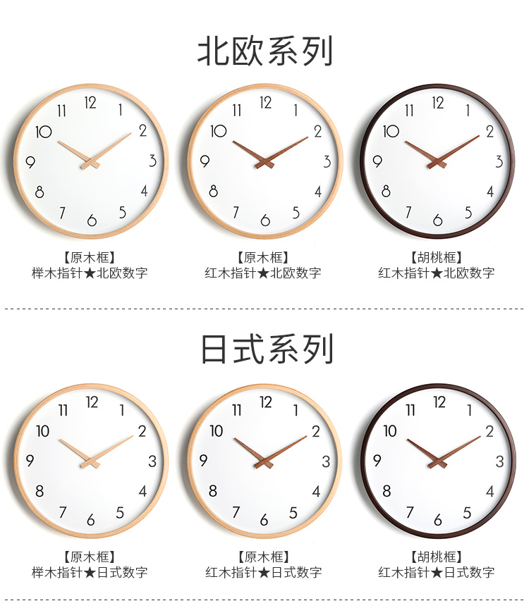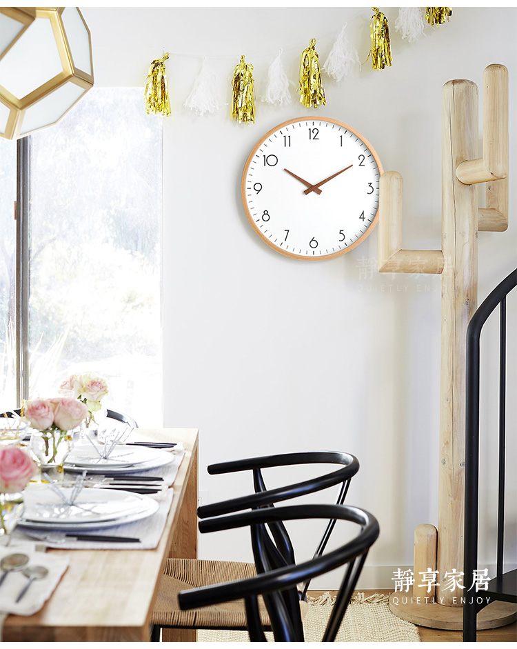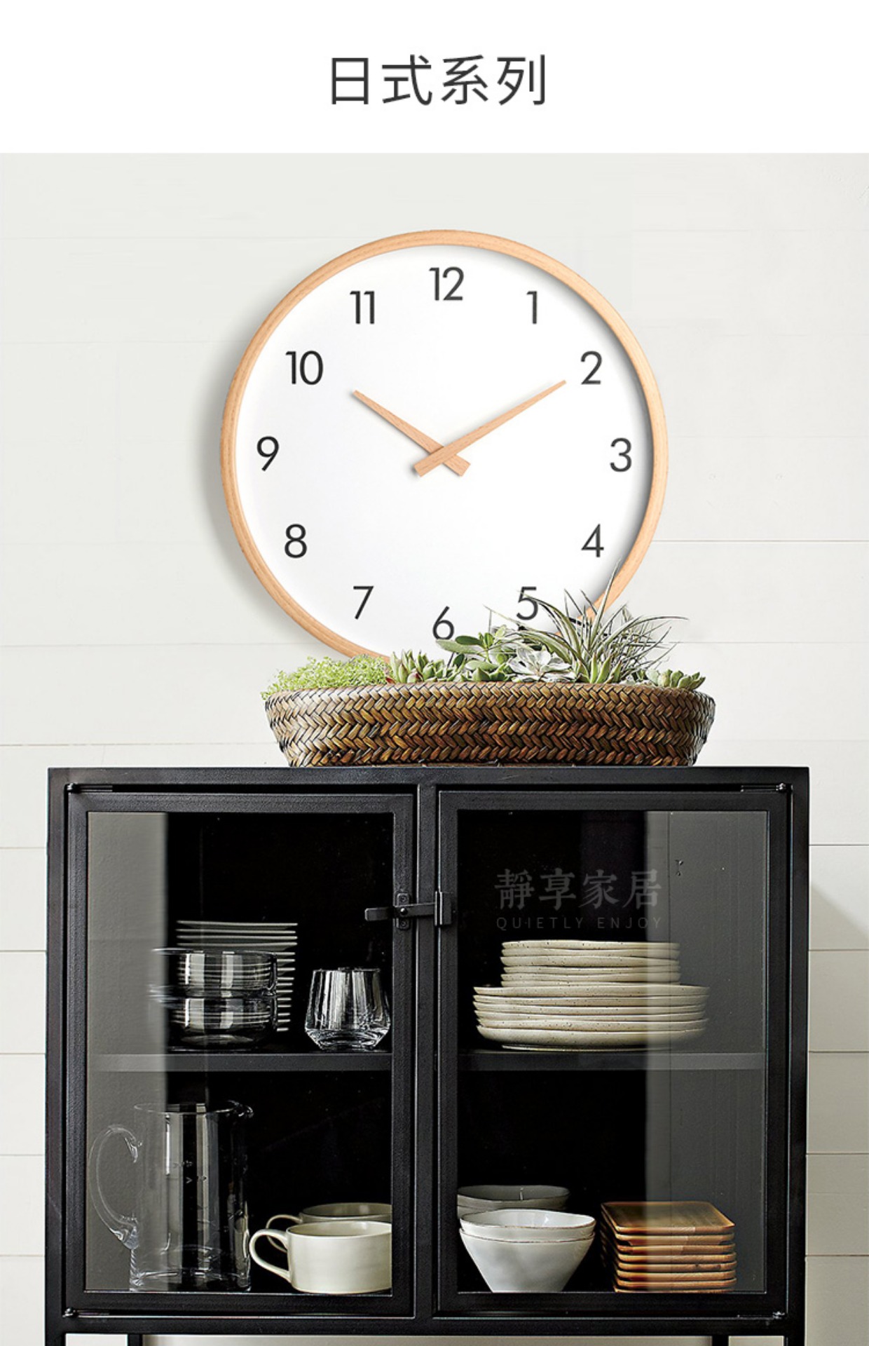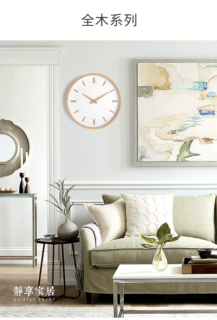 商品名称:静享家居 北欧风挂钟客厅实木质简约木钟家用石英钟表时钟卧室日式欧式挂表