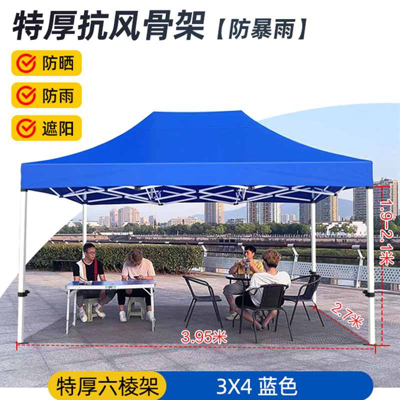 商品名称:蛮曲 折叠加厚帐篷伸缩式遮阳棚(特厚六棱3*4蓝色)单位:把