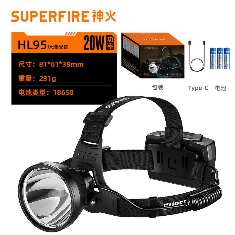 商品名称:神火强光头灯感应户外超长续航穿天炮高流明矿工赶海工地干活 HL95至尊款【1400流明-续航4.5~20h】 单位:个