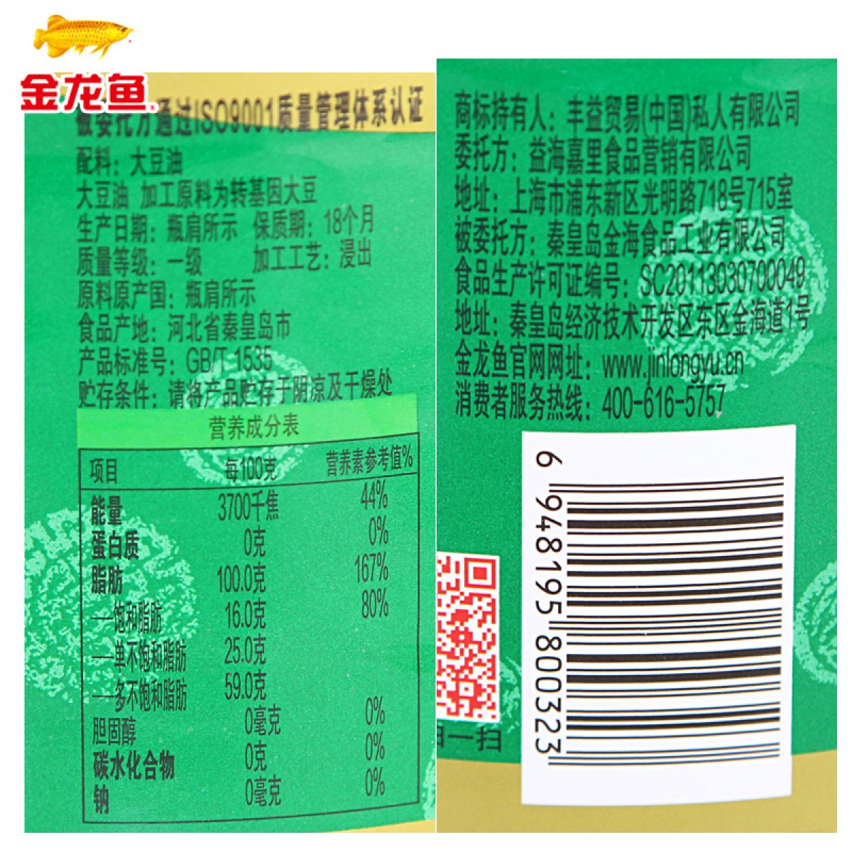 商品名称:金龙鱼 大豆油1.8L瓶装