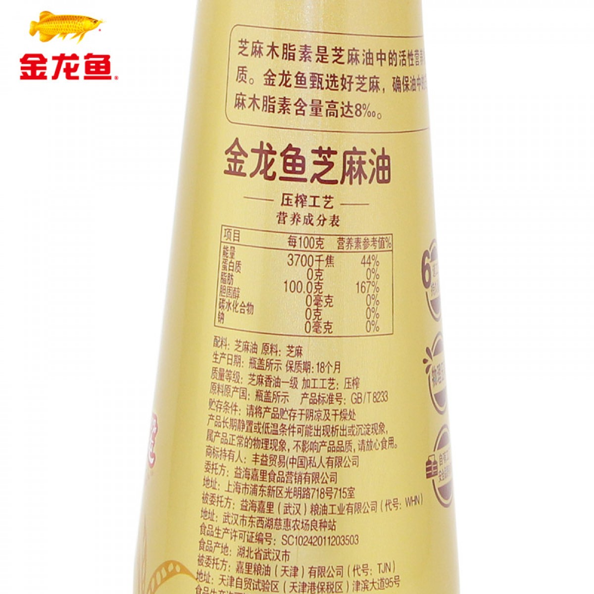 商品名称:金龙鱼 芝麻油400ml*4瓶香油芝麻油小磨香油火锅香油压榨金龙鱼油