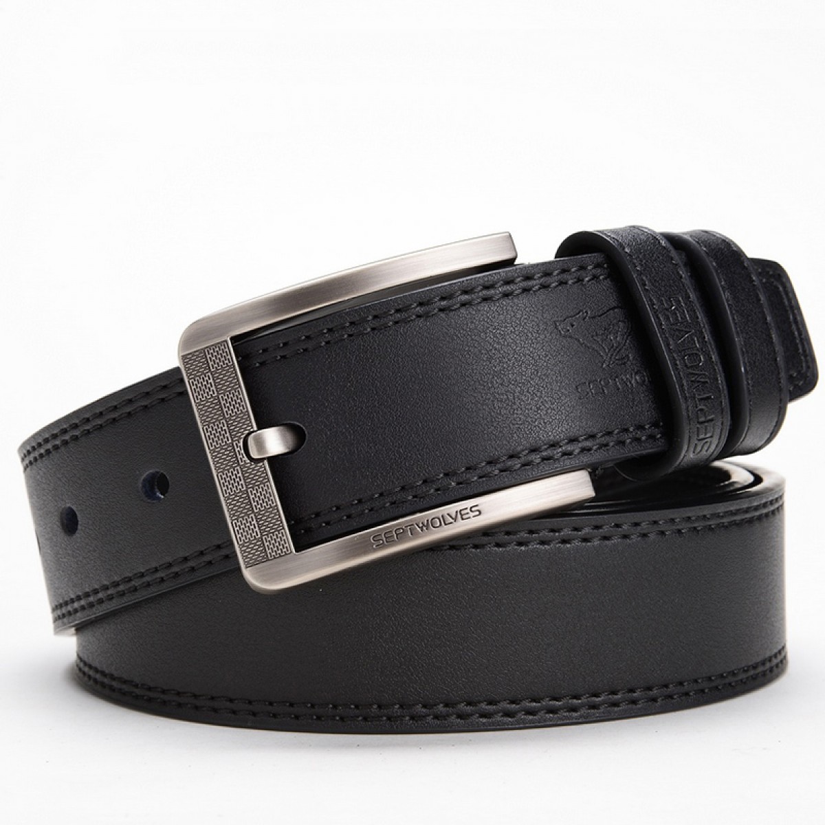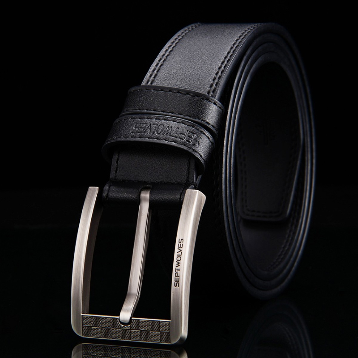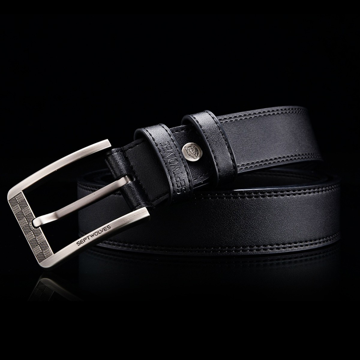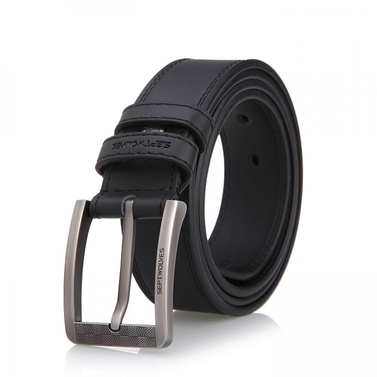 七匹狼 男士针扣皮带黑色 牛皮带 腰带 裤带7A127236000