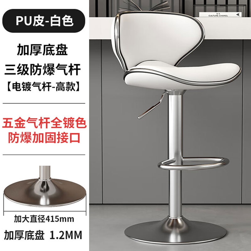 商品名称:蛮曲 高脚凳 白色PU皮 高款60-80CM 加大地盘 单位:个