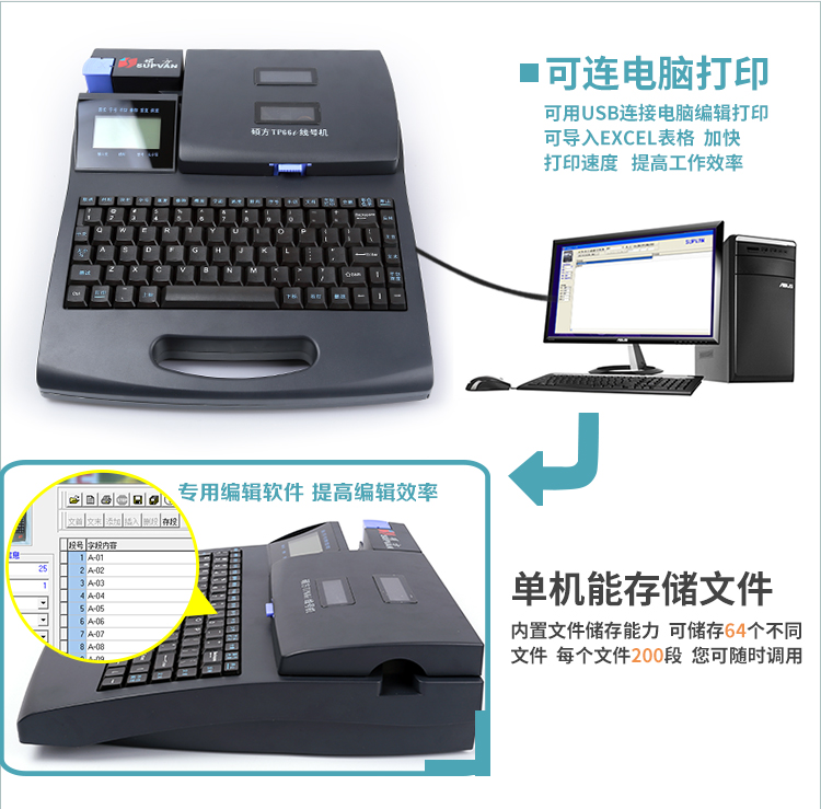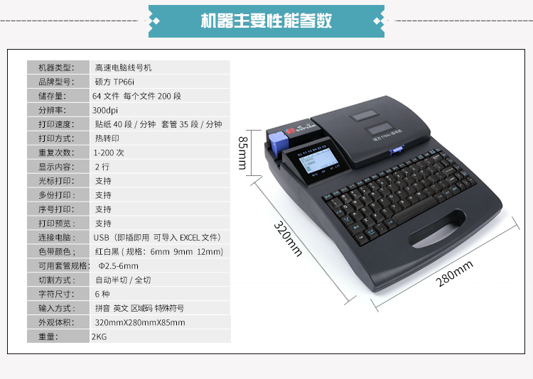 商品名称:硕方 电脑线号机 打号机打码机 套管印字机 TP66i