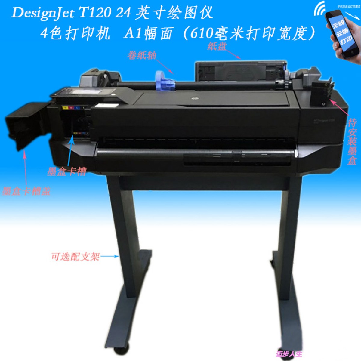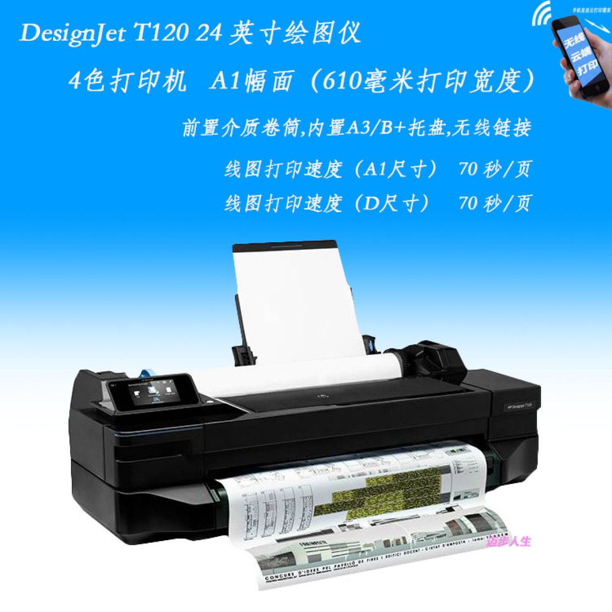 商品名称:惠普/HP 绘图仪A1大幅面工程CAD蓝图A2无线wifi照片打印机 T120