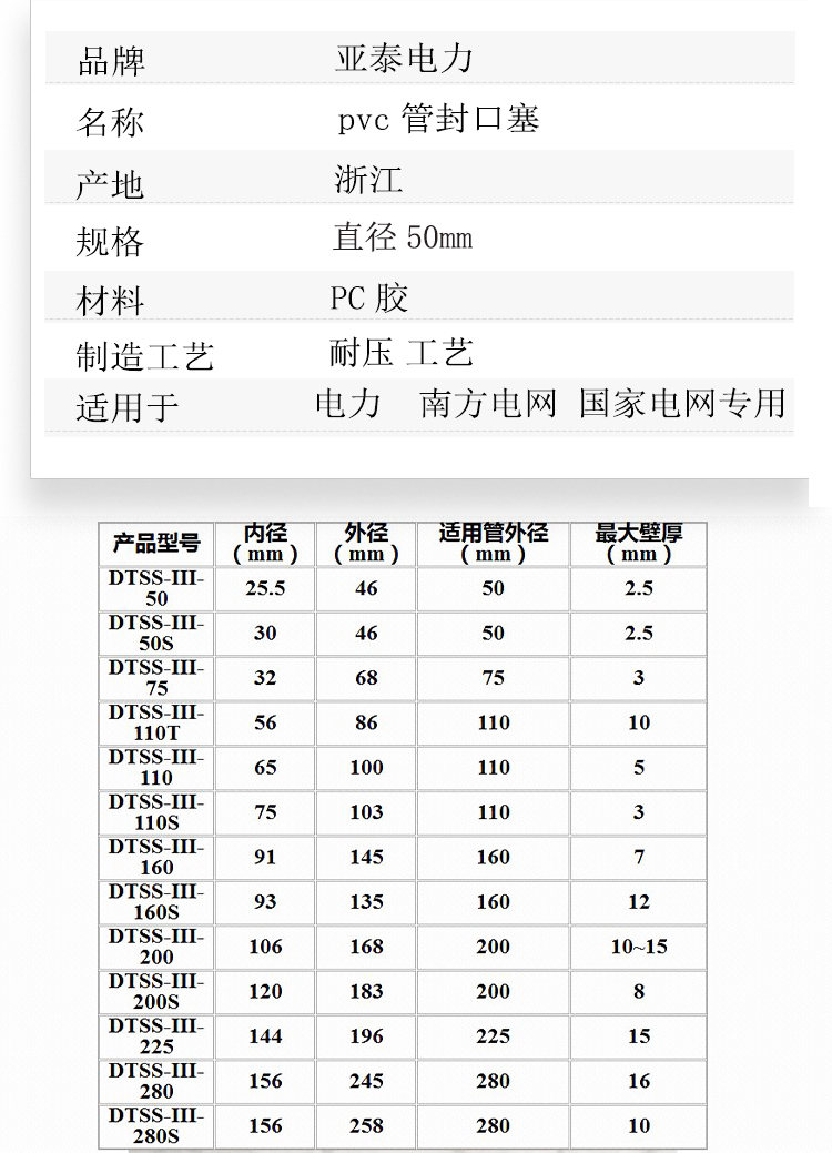 商品名称:国产 PVC管封口塞Φ50mm DTSS-III-50