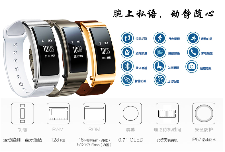 商品名称:华为/Huawei 智能手环运动手表蓝牙通电话防水计步智能穿戴安卓苹果通用 B3
