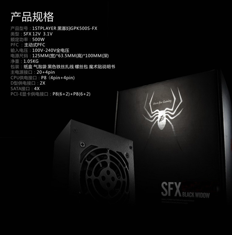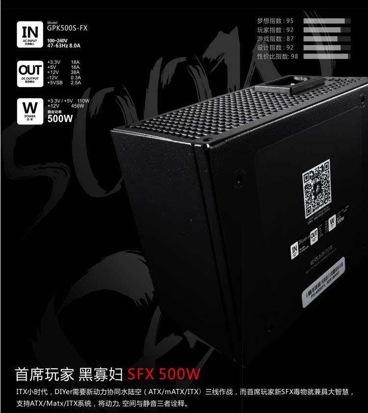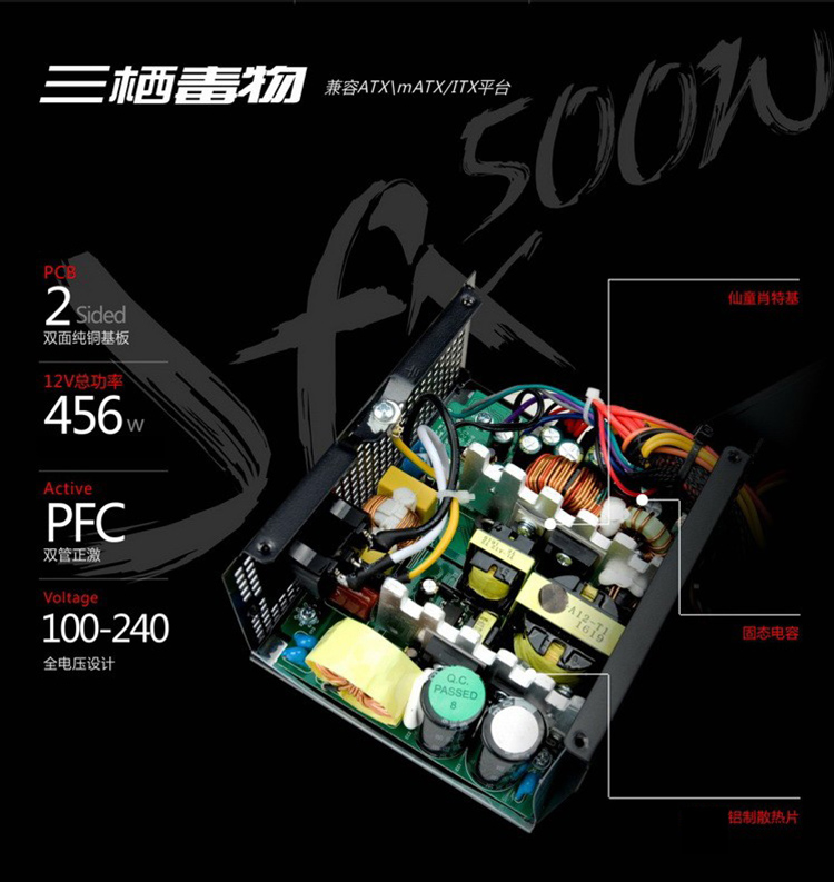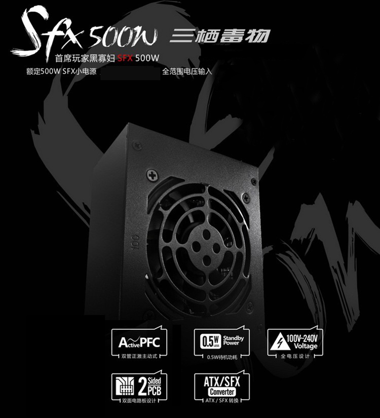 商品名称:首席玩家 额定500W小电源 SFX台式机箱电脑电源 ITX电源