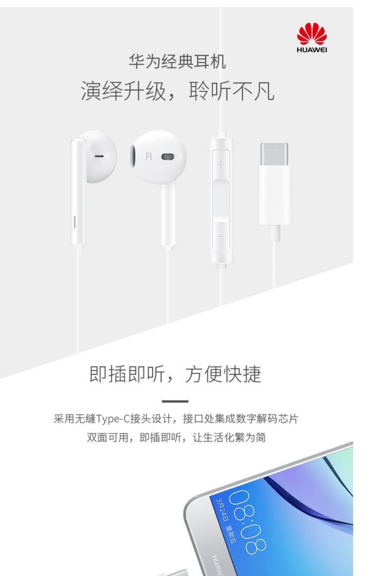 商品名称:华为/Huawei 华为type-c版耳机入耳式耳塞 CM33适用于 MATE10