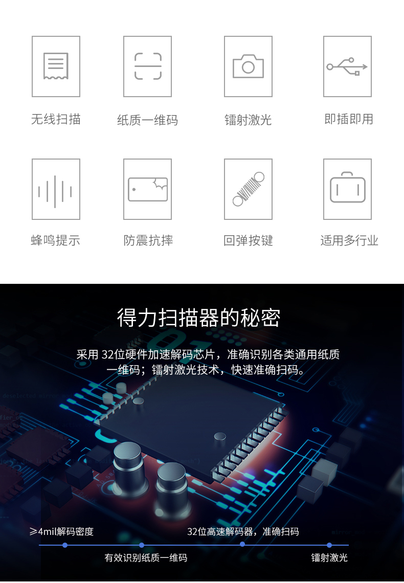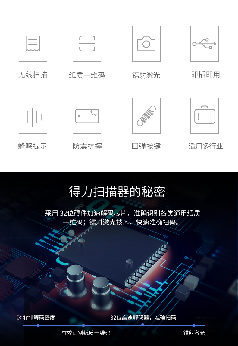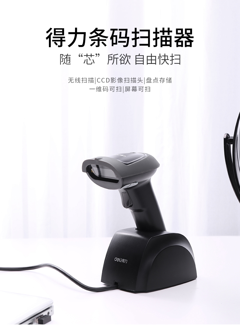 得力 条码扫描枪一维码扫描器 14951W