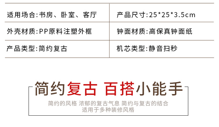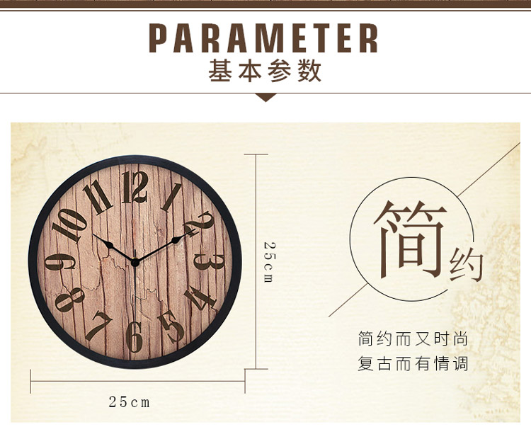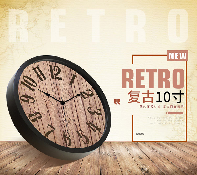 商品名称:国产 HICAT 复古10寸静音挂钟 欧式创意客厅卧室个性圆形简约现代钟表