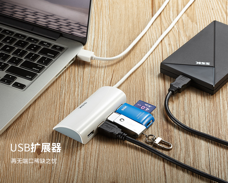 飚王/SSK USB3.1 Type-C转USB3.0集线器 扩展HUB 苹果macbook转usb